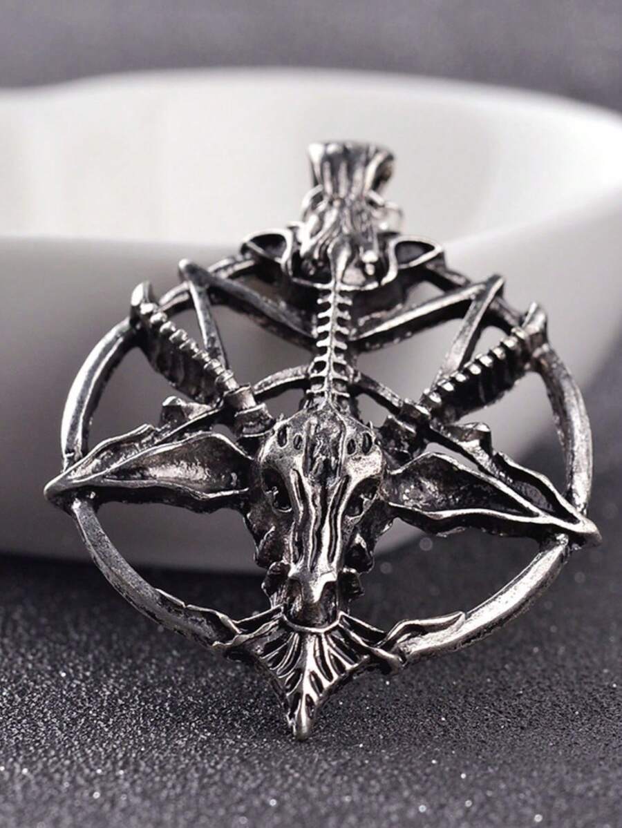 Goth Vintage Style Goat Head & Pentagram Pendant Necklace