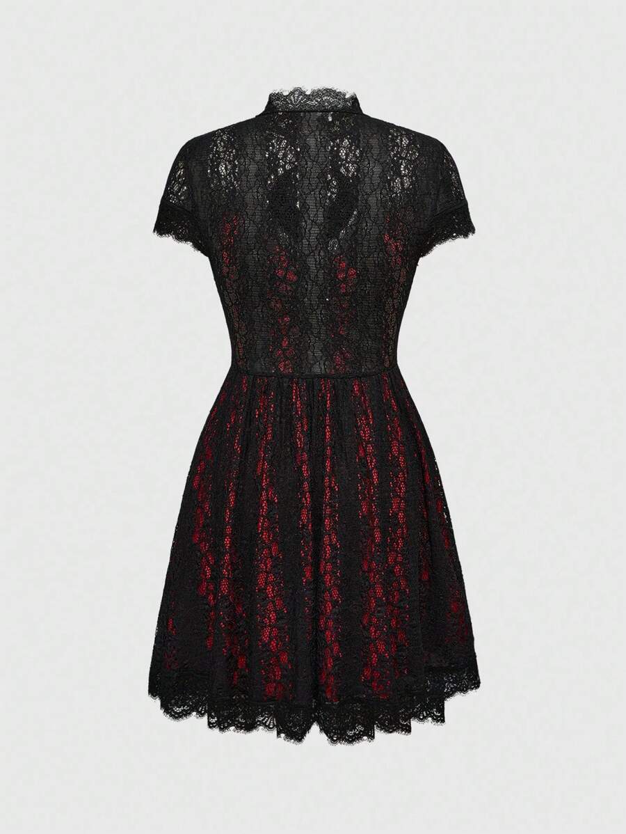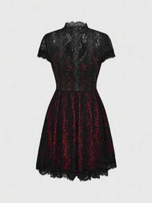 Goth Women Gothic Style Moon Embroidery Contrast Lace Mini Dress