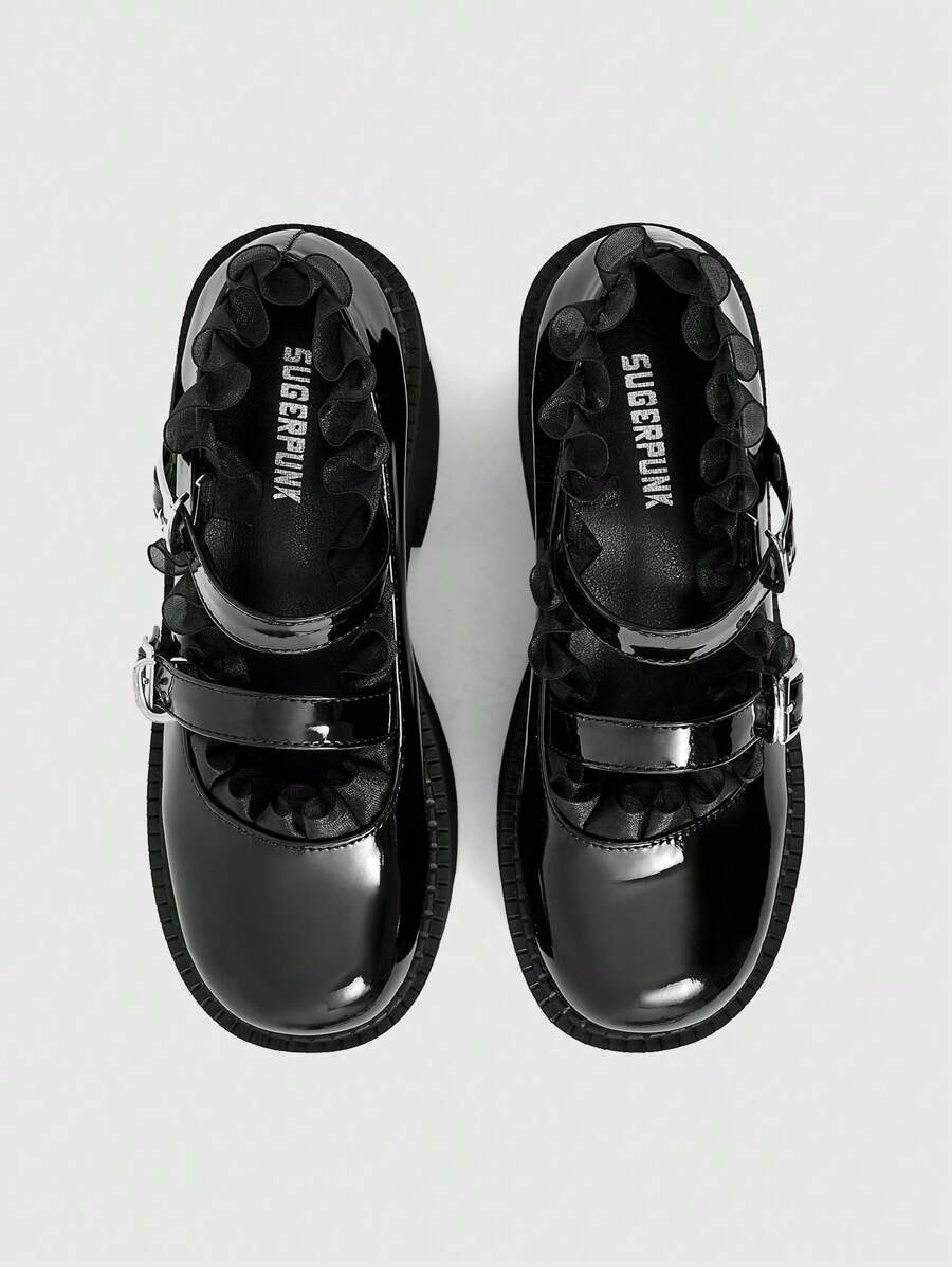 Goth Women Plain Color Mesh Contrast Casual Platform And Wedge Slip-On Shoes