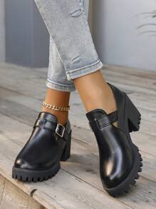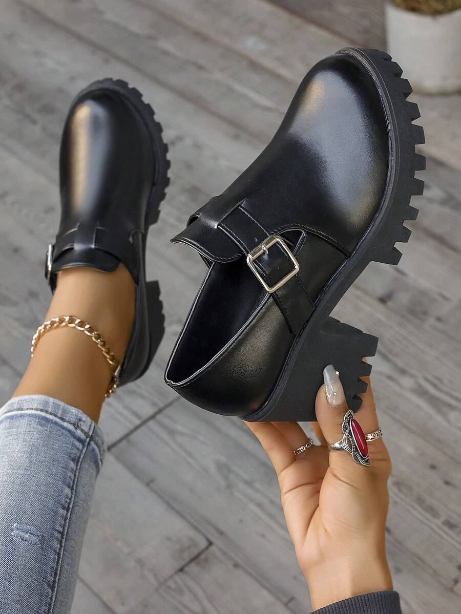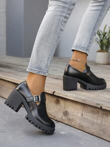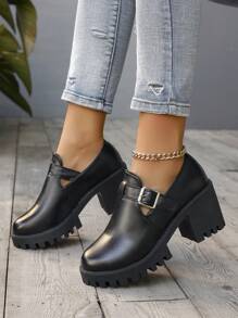 Goth Women'S French Mary Jane Style Thick Soled Leather High Heel Shoes, 2023 Fall Collection
