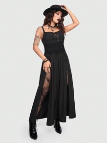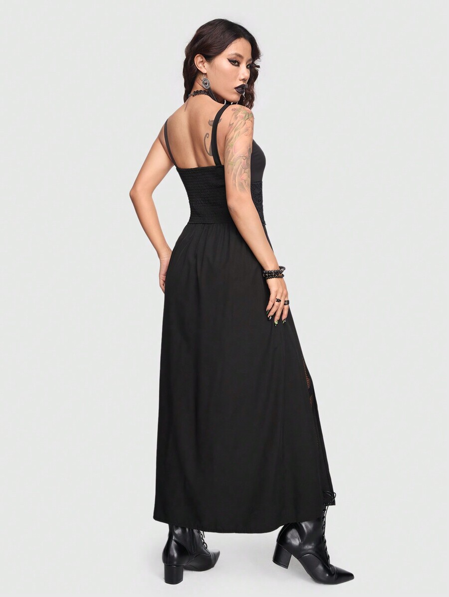 Goth Women'S Spring/Summer Boho Style Plain Bust Tie, Slit Hem, Long Cami Dress With Leggings