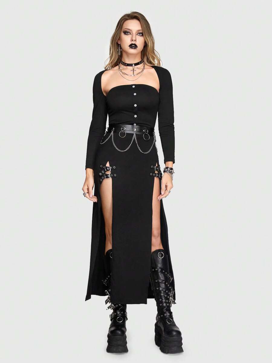 Goth Women's Casual Fashionable Strapless Top And Pants Two Piece Set