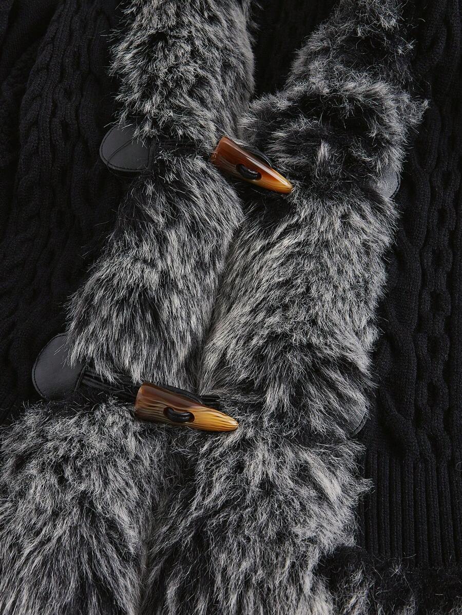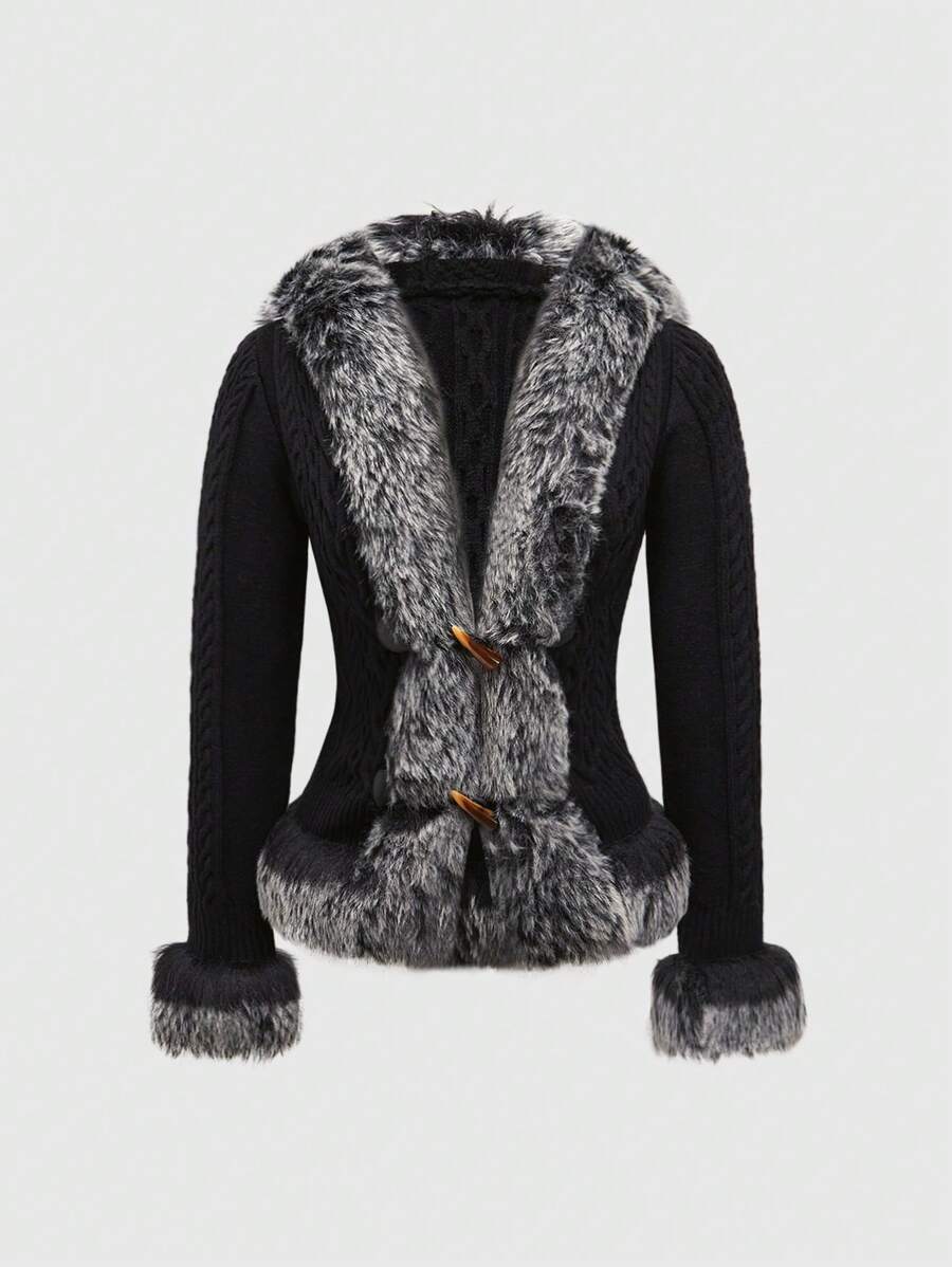 Goth Women's Contrast Fur Collar Button-Up Knitted Cardigan, Snow