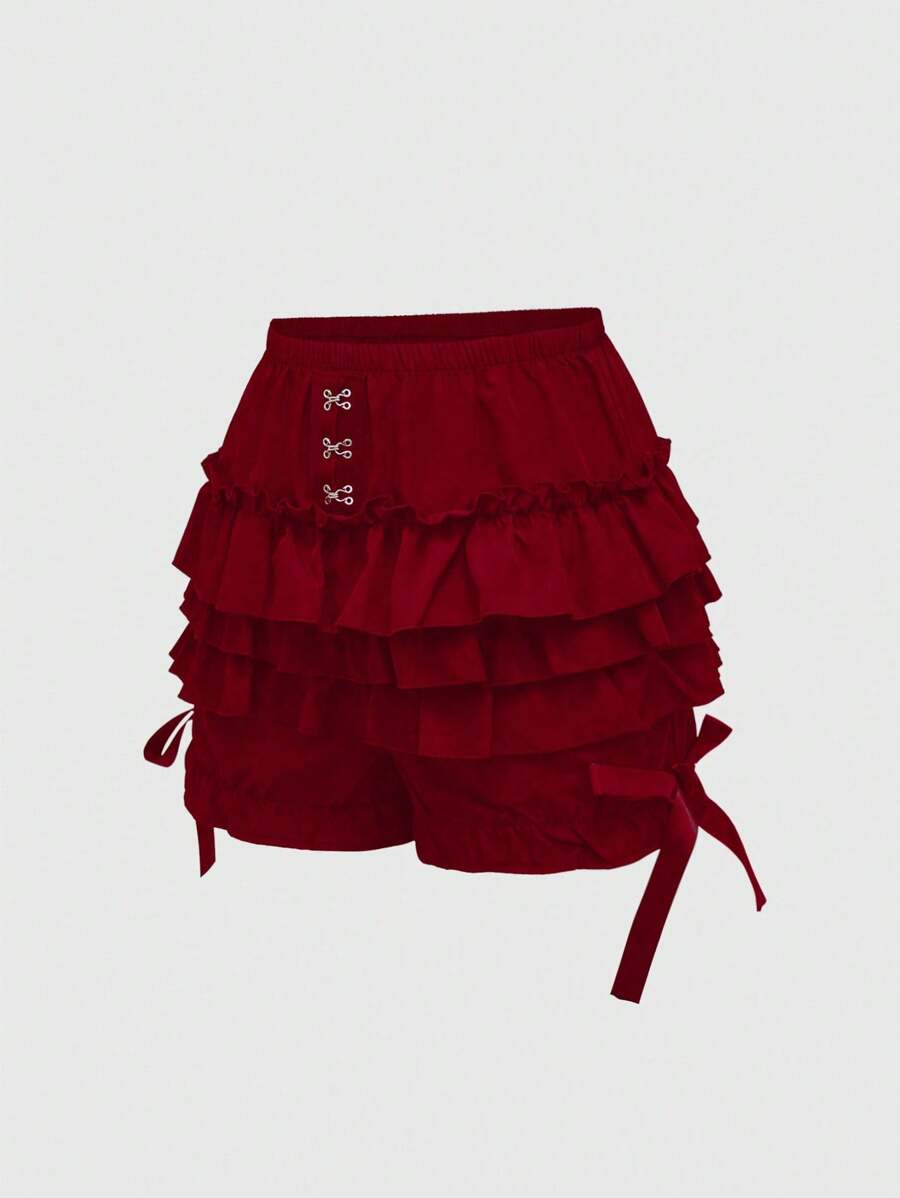 Goth Women's Cute 3-Layer Ruffle Hem Bow Decor Pumpkin Shorts