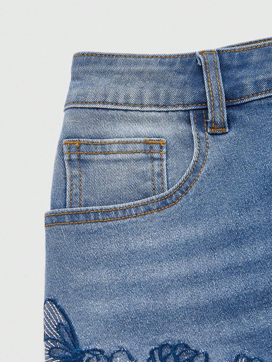 Goth Women's Floral Embroidery Frayed Hem Denim Skirt, School