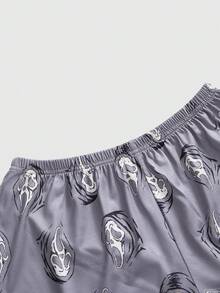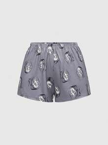 Goth Women's Gothic Imp Pattern Contrast Color Strap Camisole & Shorts Casual Pajama Set