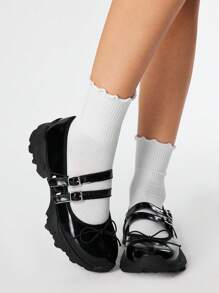 Goth Women's Mary Jane Shoes, Bow Round Toe Functional Ballet Platform Sneakers, PU Material, Black Color, Strap Buckle Design, Suitable For Sports, Graduation, Photography