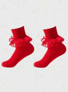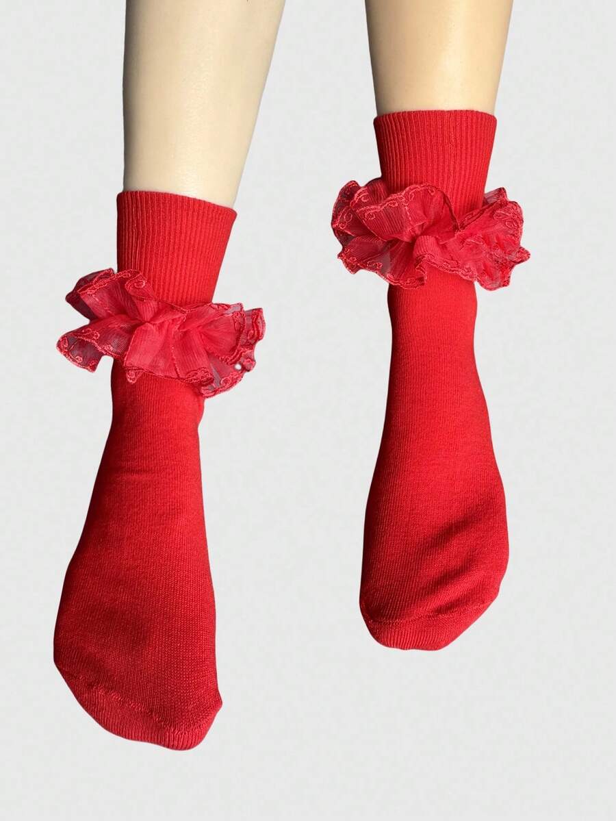 Goth Women's Mid-Calf Socks With Ruffle Trim
