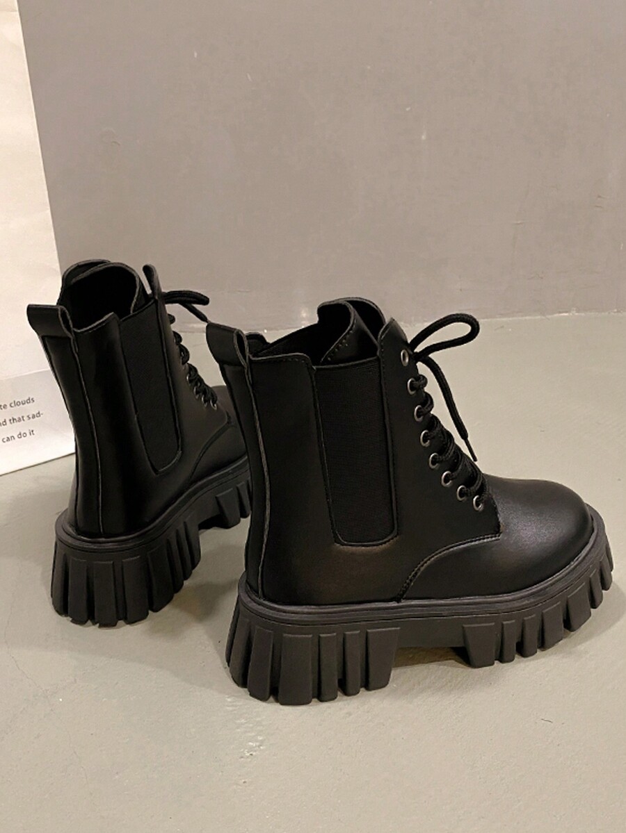 Goth Women's Solid Color Retro Casual Fashion Lace-Up Thick-Soled Short Boots