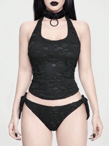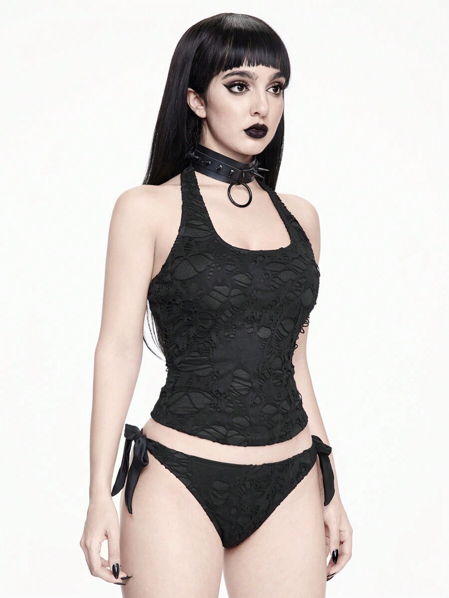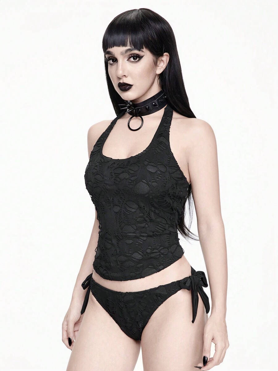 Goth Women's Solid Color Spaghetti Strap Swimwear With Swim Shorts
