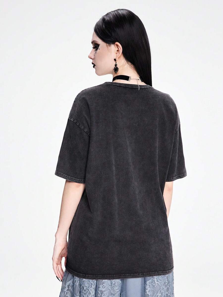 Women's Vampire Gothic Butterfly Atmosphere Loose Snowflake Washed And Distressed Print T-Shirt