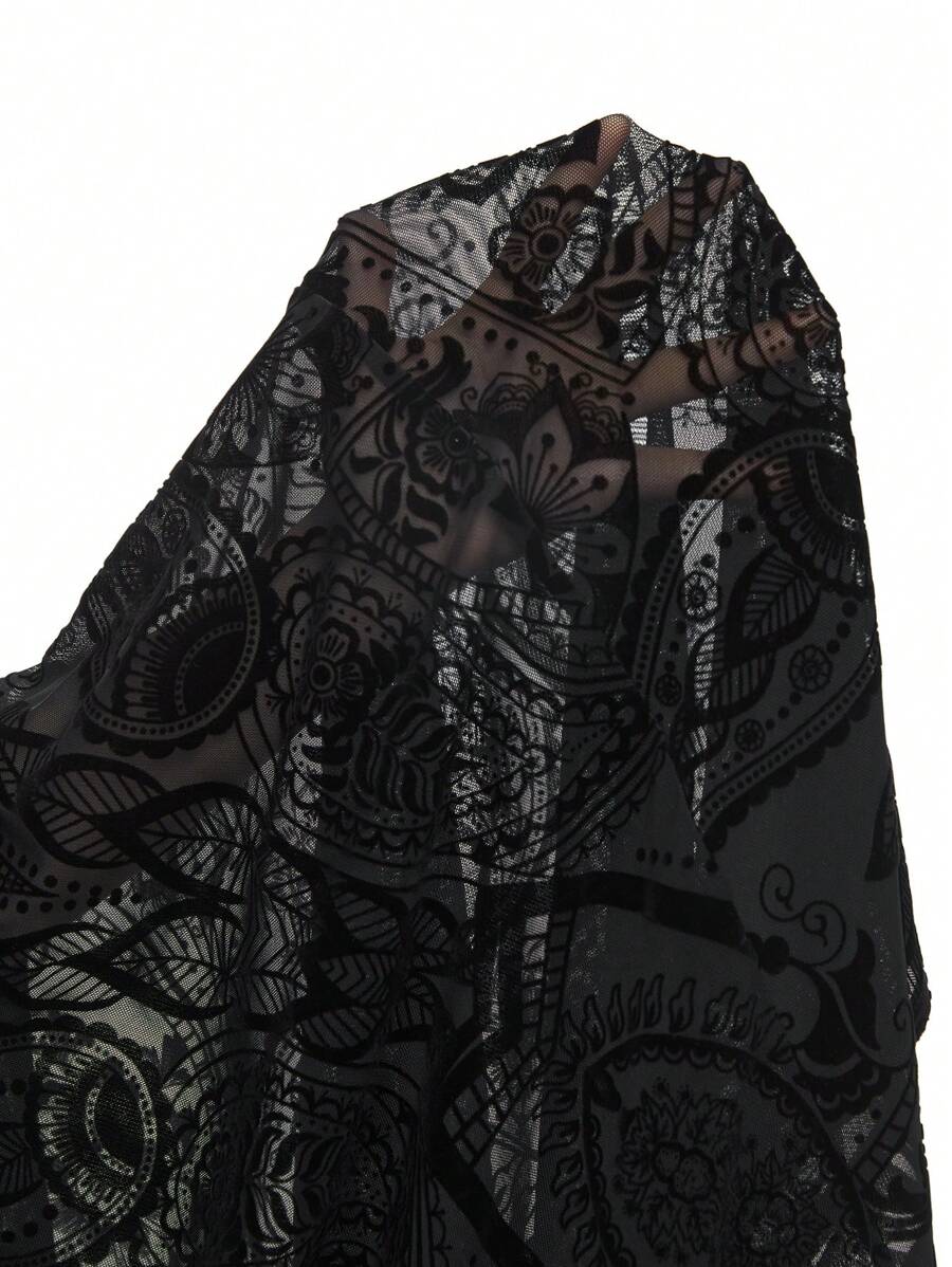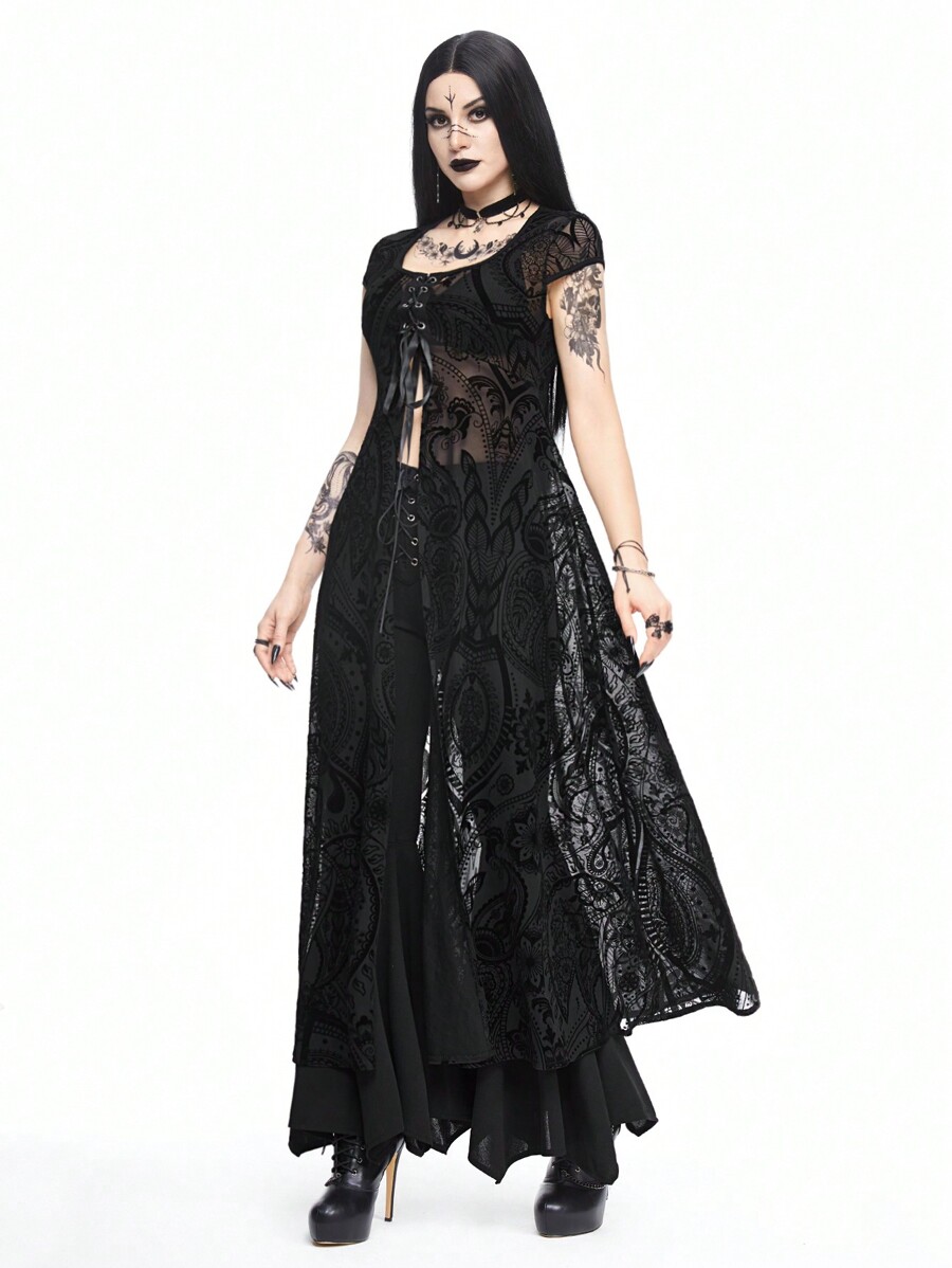 Women's Vintage Goth Style Flocked Embossed Dress With Ivy Pattern