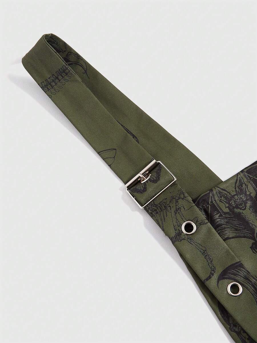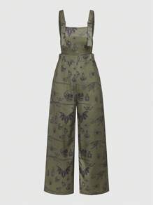Gothic Bat & Skull Print Jumpsuit With Color Blocking Wide Leg Pants, Dark Academia Style