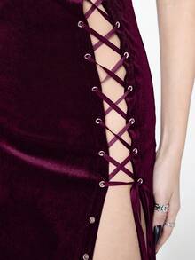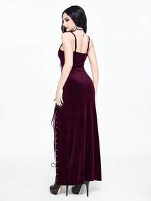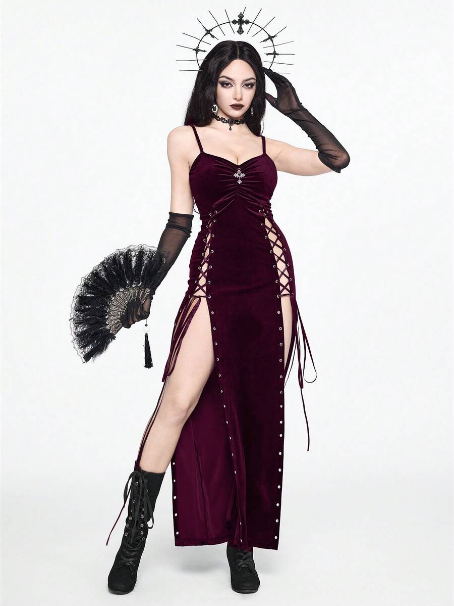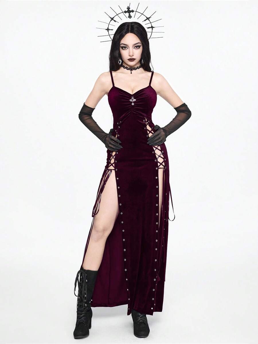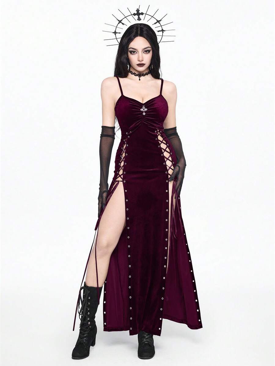 Gothic Cross High Slit Sexy Bodycon Slip Dress