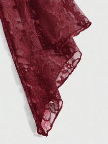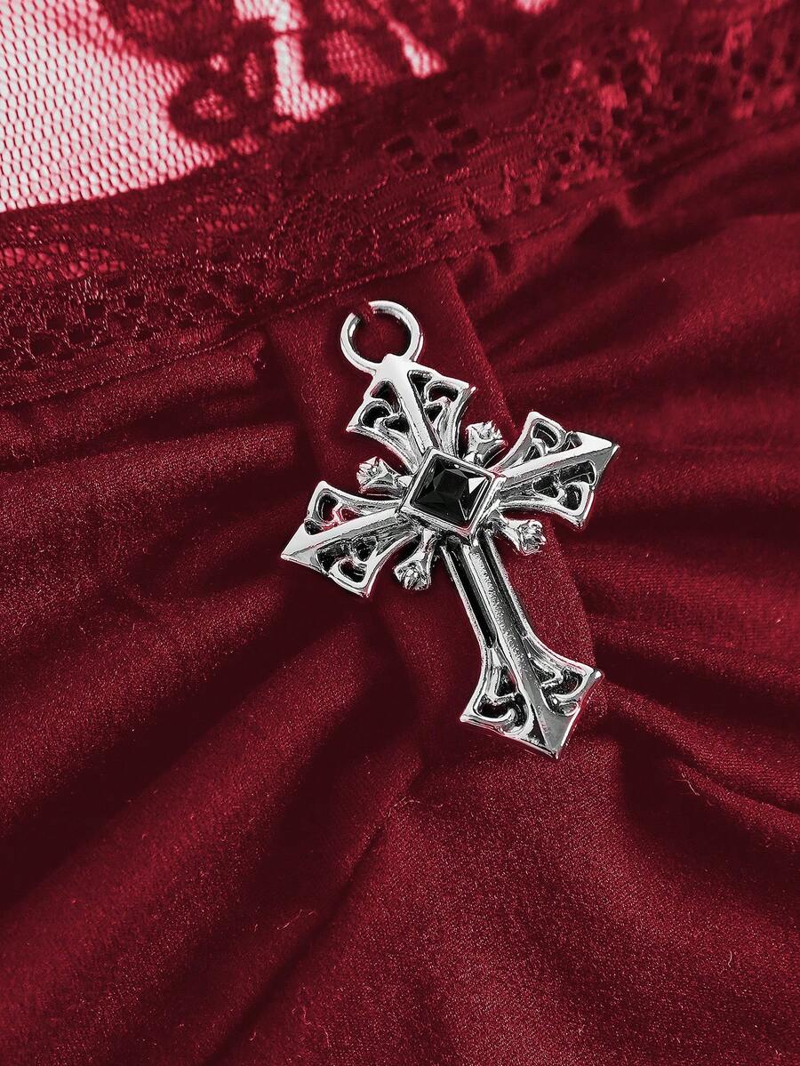 Goth Gothic Cross Lace Patchwork Square Neck Flare Sleeve Blouse, Burgundy