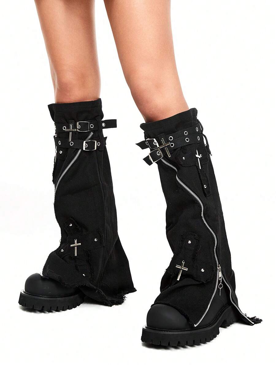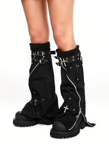 Gothic Cross Print Leg Warmers Punk Lolita Y2K Style Aesthetic Leg Warmers For Halloween
