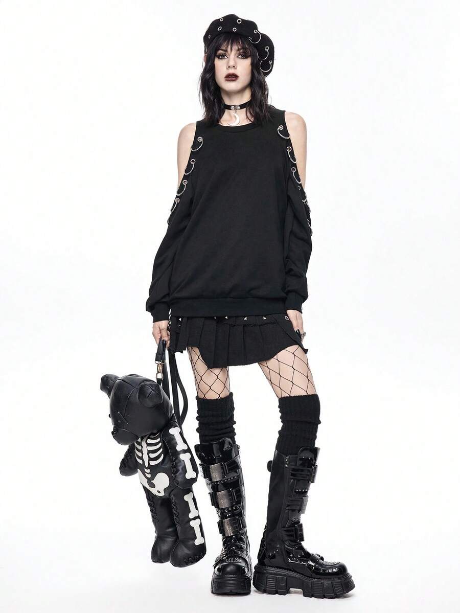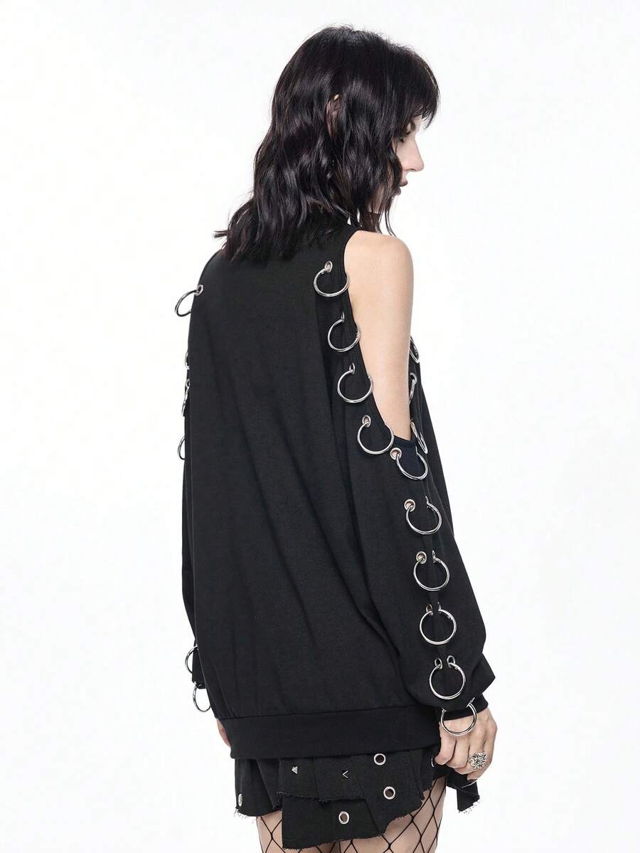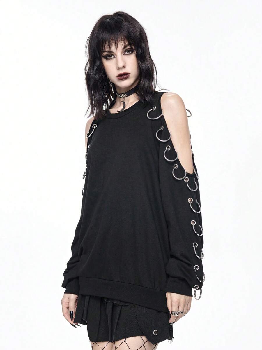 Gothic Cutout Shoulder Metal Grommet Decor Women Sweatshirt