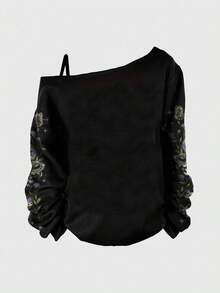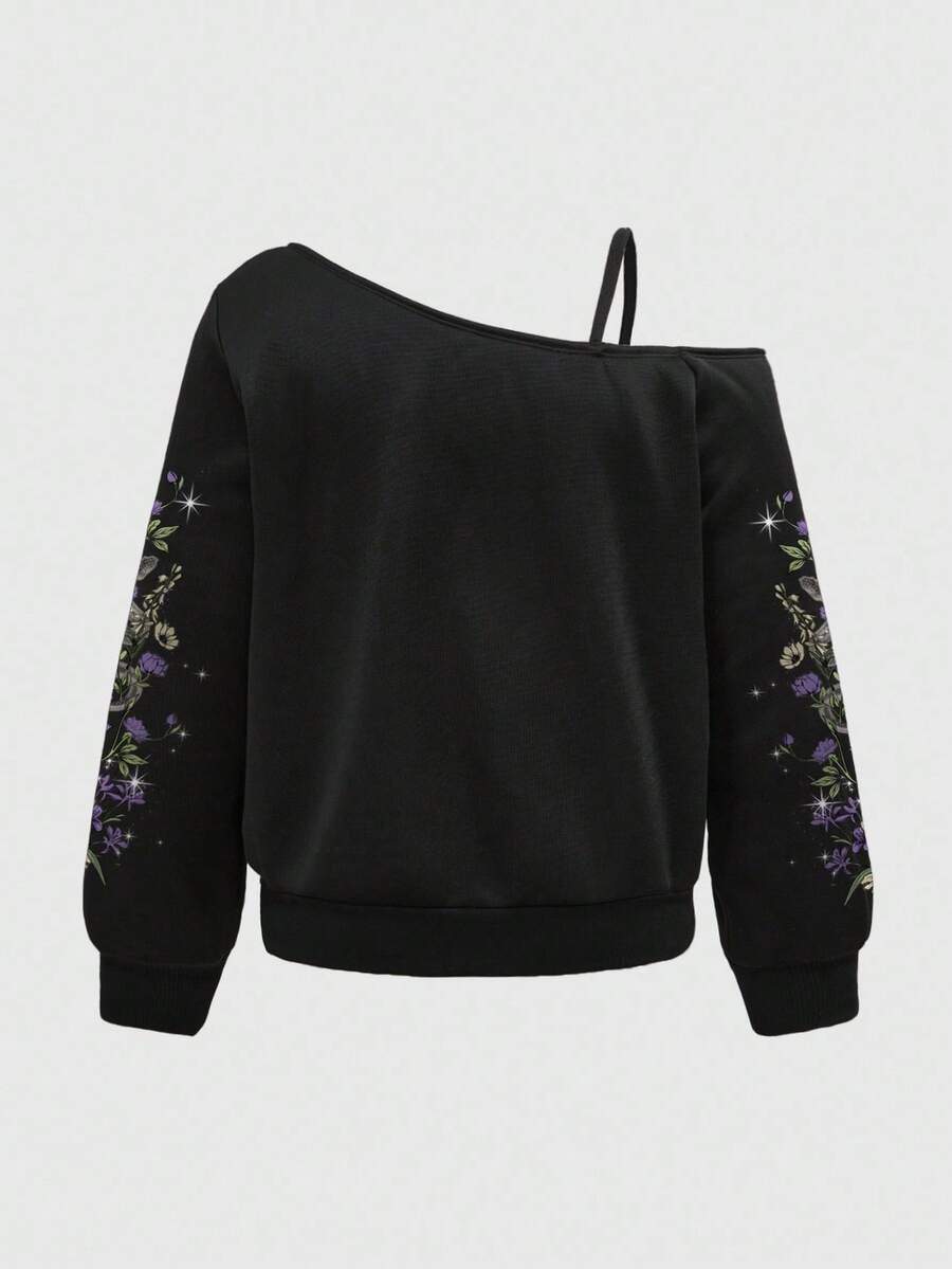 Goth Gothic Dark Forest Floral Autumn/Winter Snake, Moth, Butterfly, Plant, Sun & Moon Graphic Sexy Asymmetric-Shoulder Plus Size Hoodie