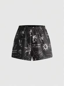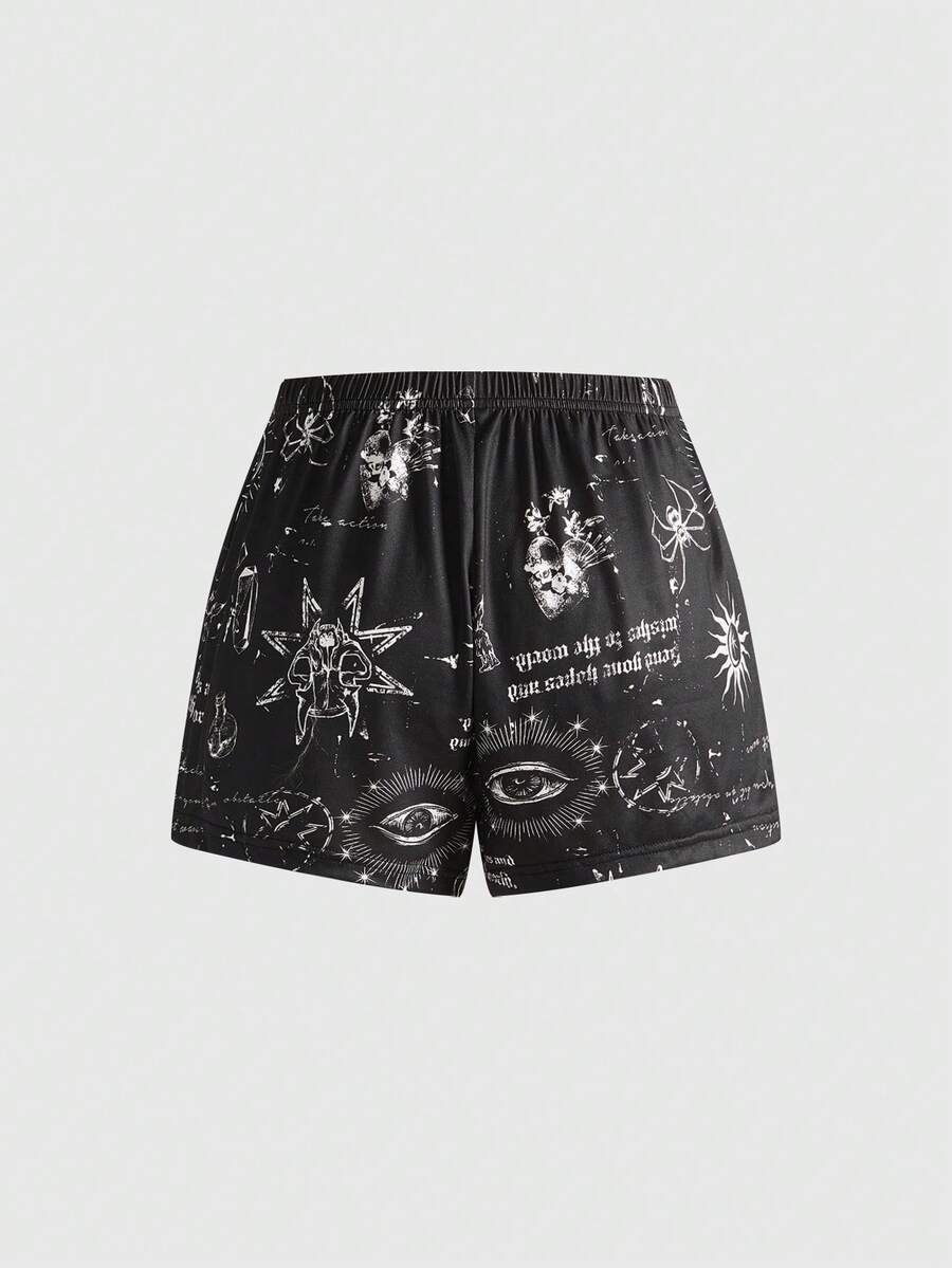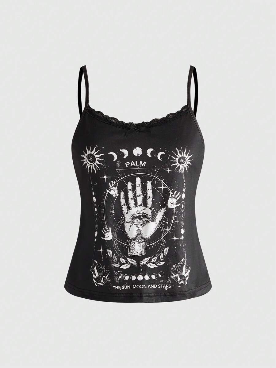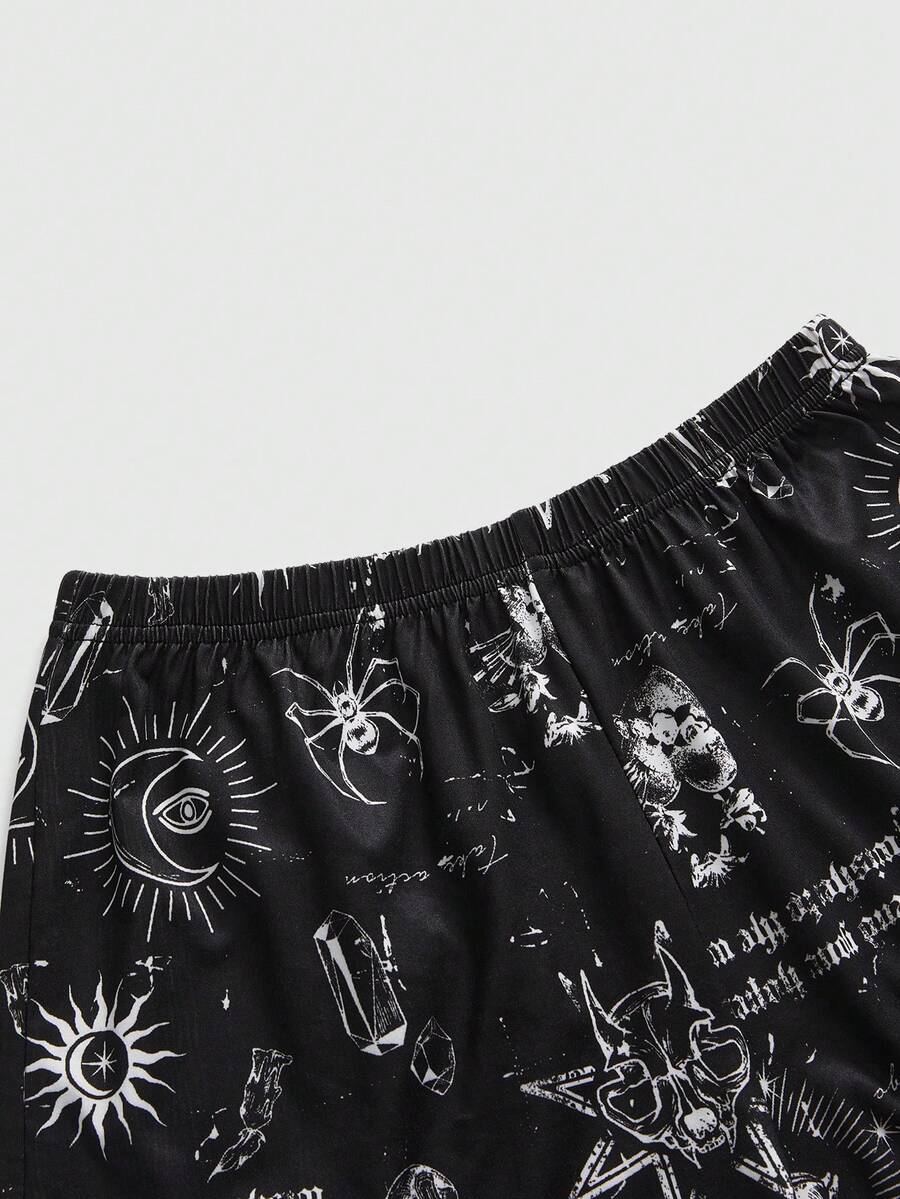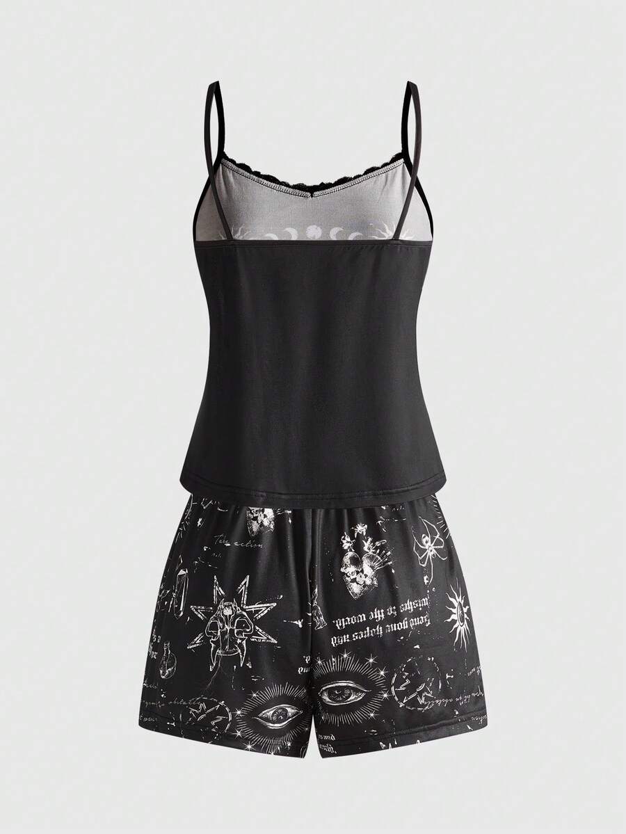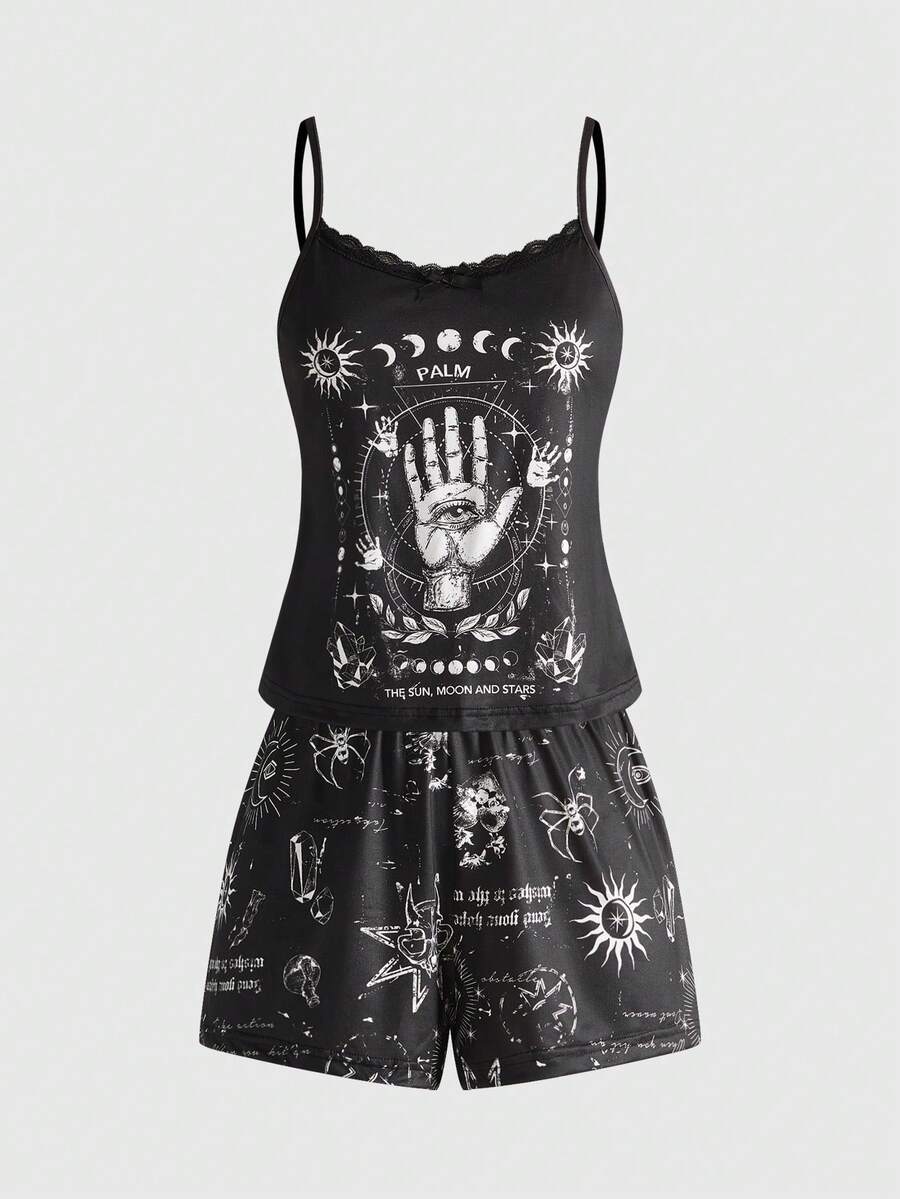 Gothic Dark Magic Spider Sun & Moon Palm Crystal Lace Camisole & Shorts Pajama Set