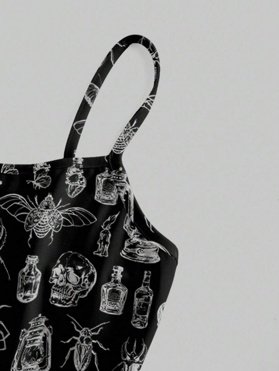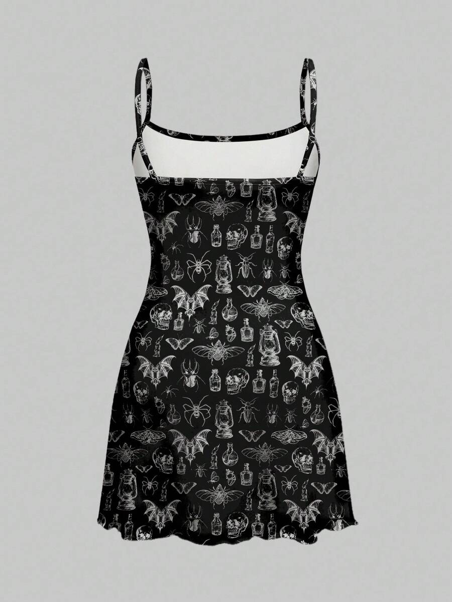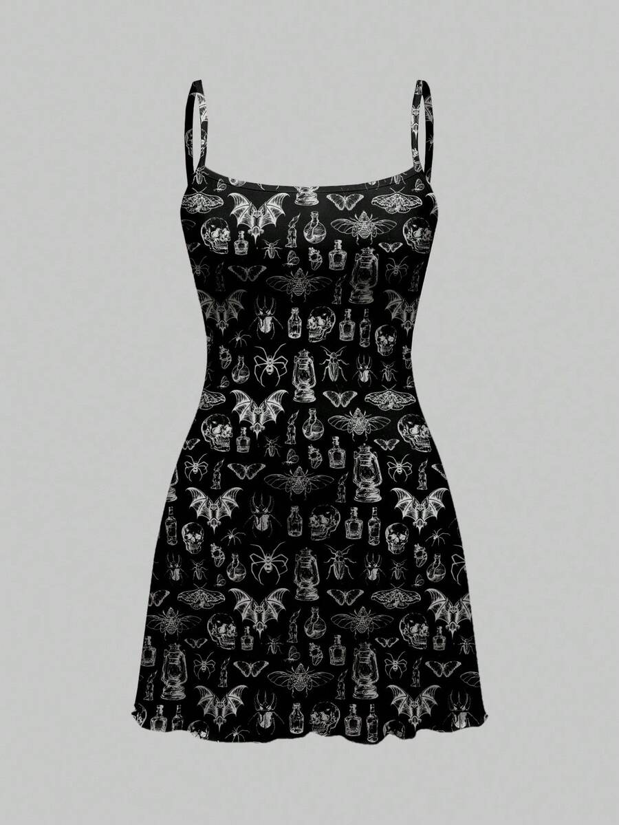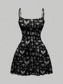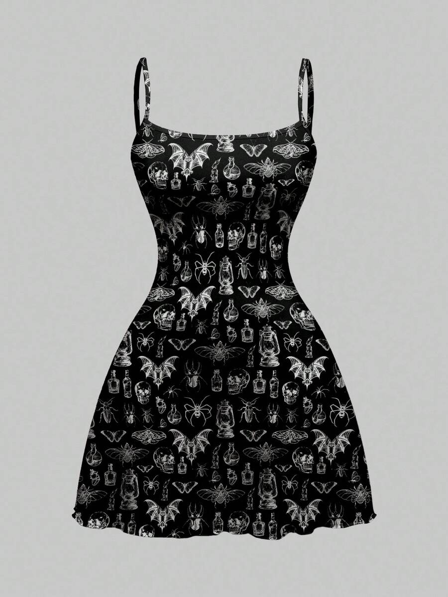 Gothic Dark Skull, Moth, Bat, Spider Mini Dress For Women, Halloween