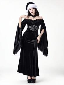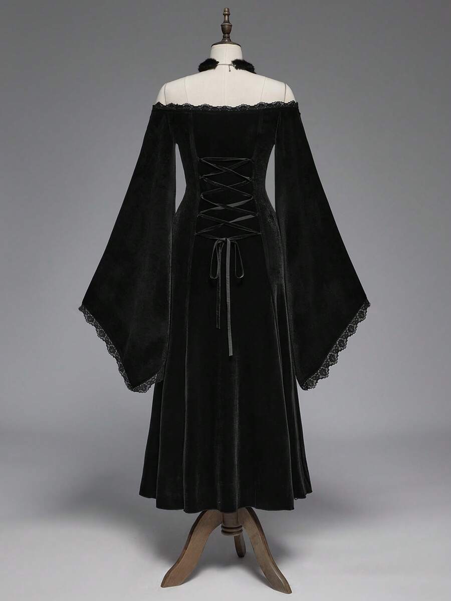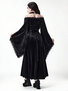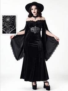 EDITION Gothic Floral Cutout Shoulder Lace Patchwork Dress For Women