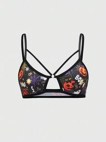 Gothic Halloween Spooky Ghost Pumpkin Cobweb Black Cat Wireless Bra For Women