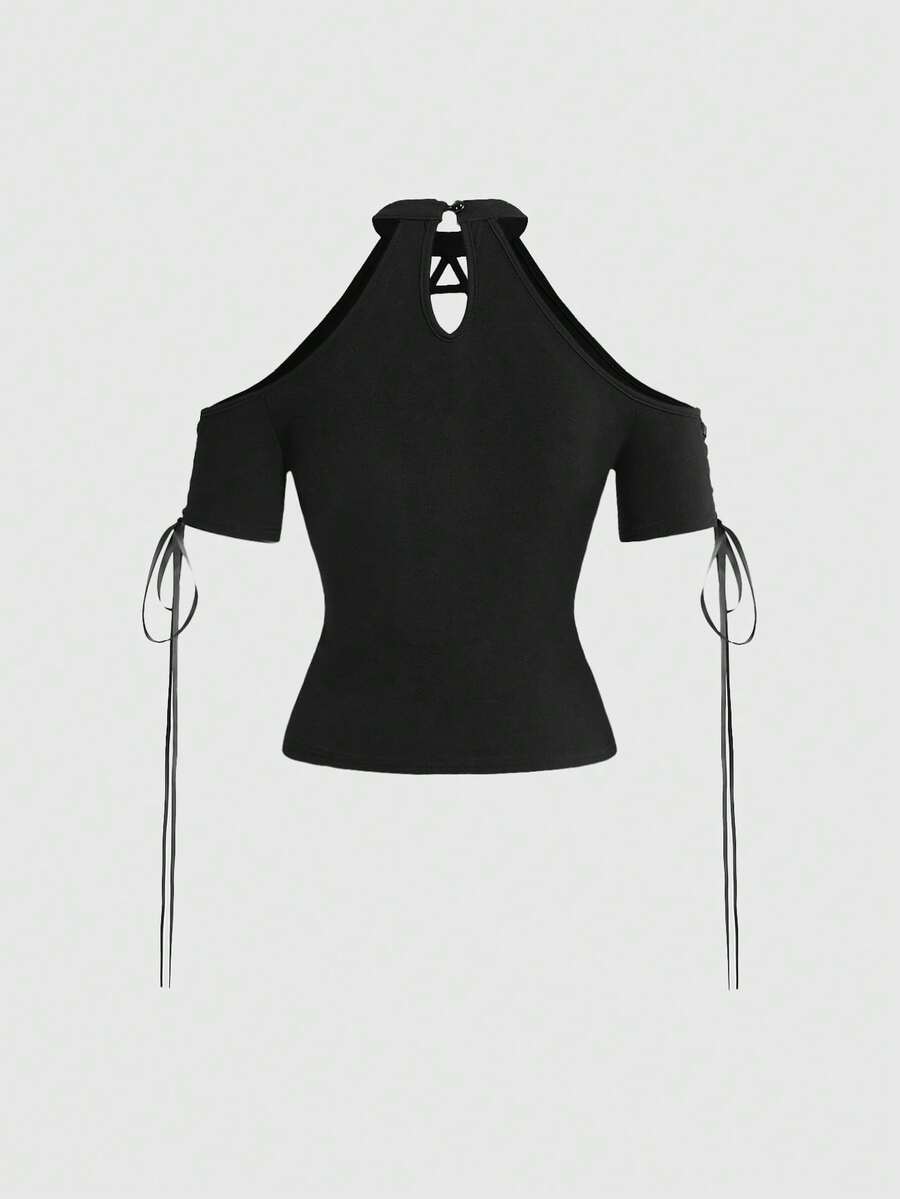 Gothic Hollow Lace-Up Six-Pointed Star Tight Fit Women T-Shirt, Dark Summer