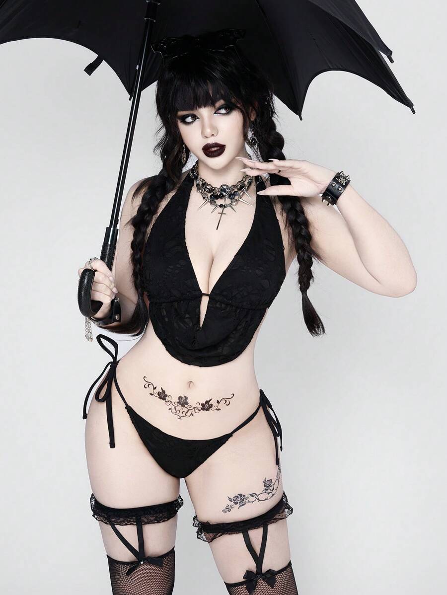 Gothic Hollow Out Distressed Texture 2Pcs Bikini Set, Halloween