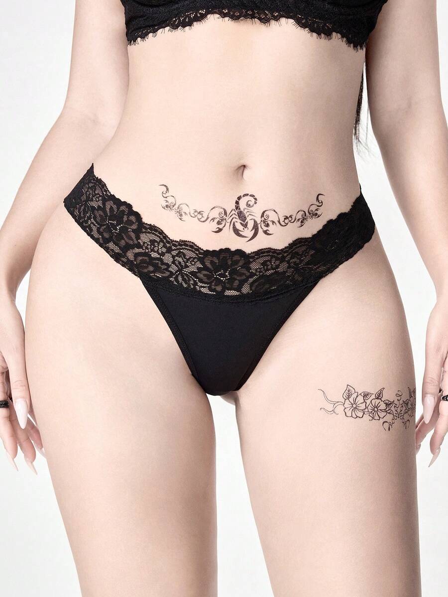 Gothic Lace Cross Strap Bow Lace Thong Panties