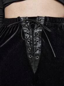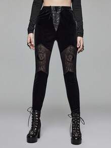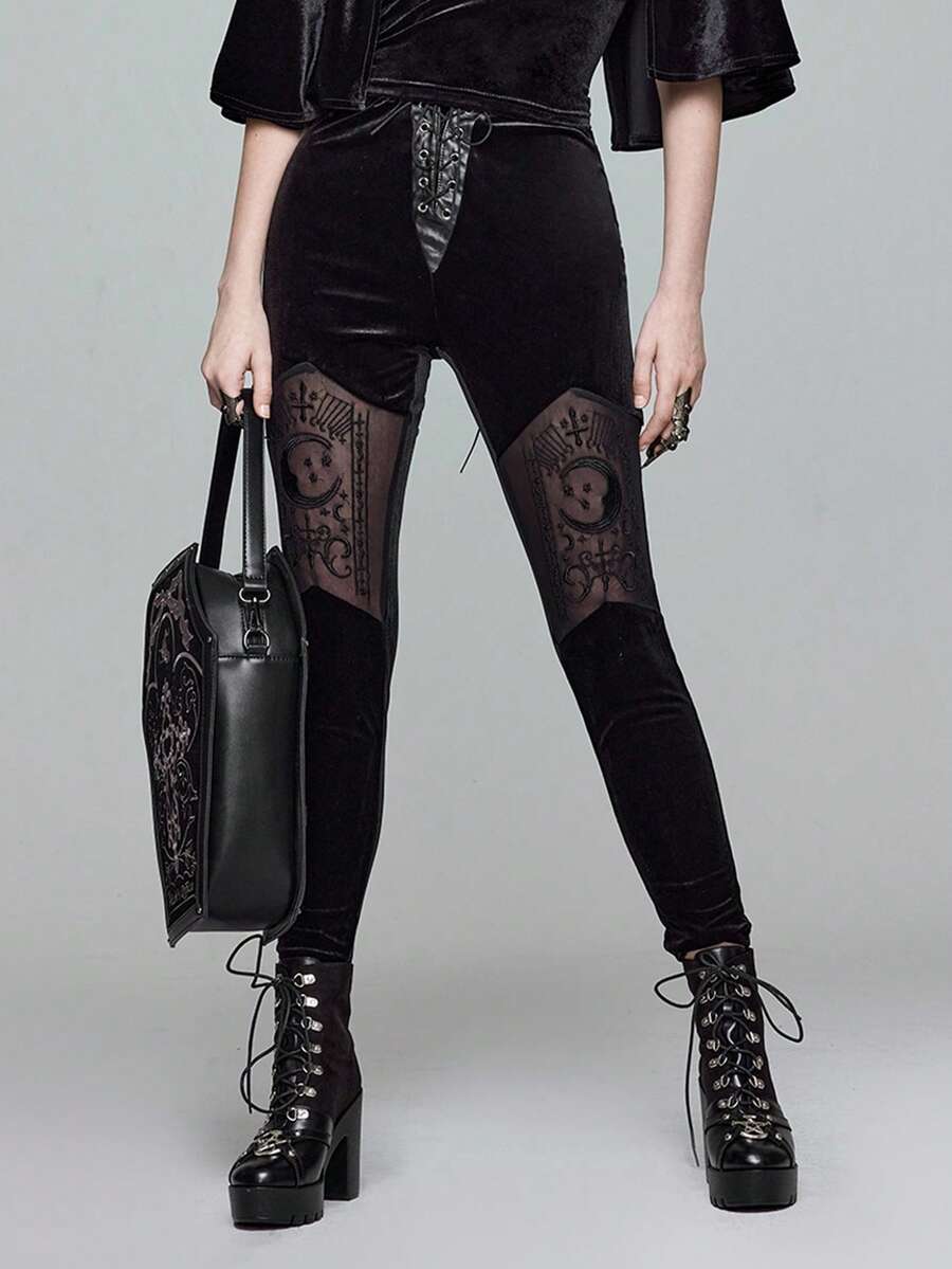 Goth Gothic Palace Style Halloween Outfit, Moon & Cross Embroidery Decor Velvet Leggings