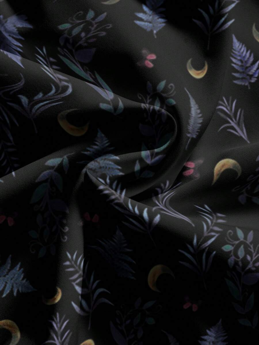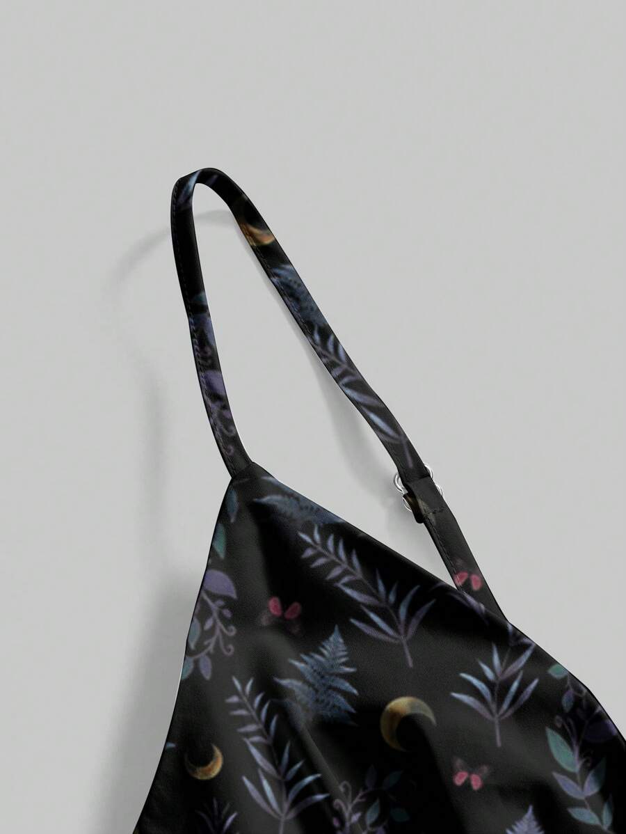 Gothic Plant Print Spaghetti Strap Multi-Layer Vacation Witchy Boho Style Dress For Women