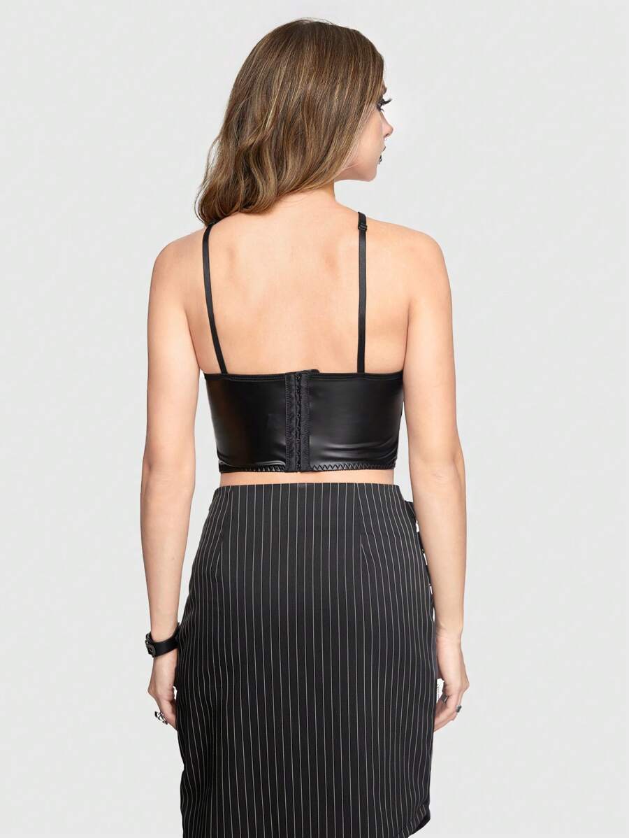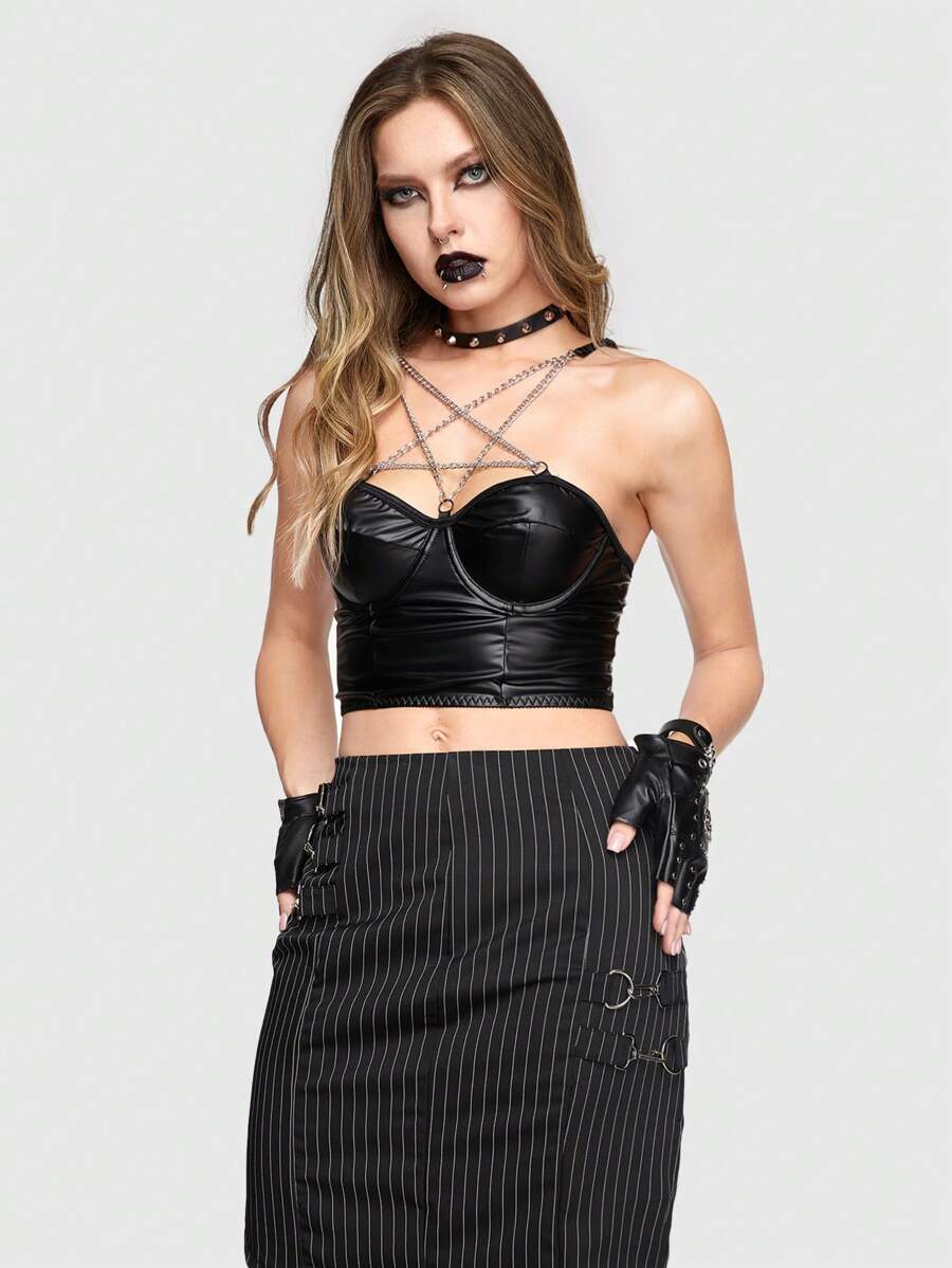 Gothic Punk & Hardcore Style Ladies' Pu Leather Chain Strap Camisole Top With Pentagram Shaped Metal Accessory For Summer