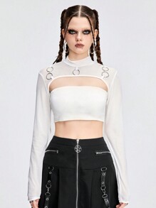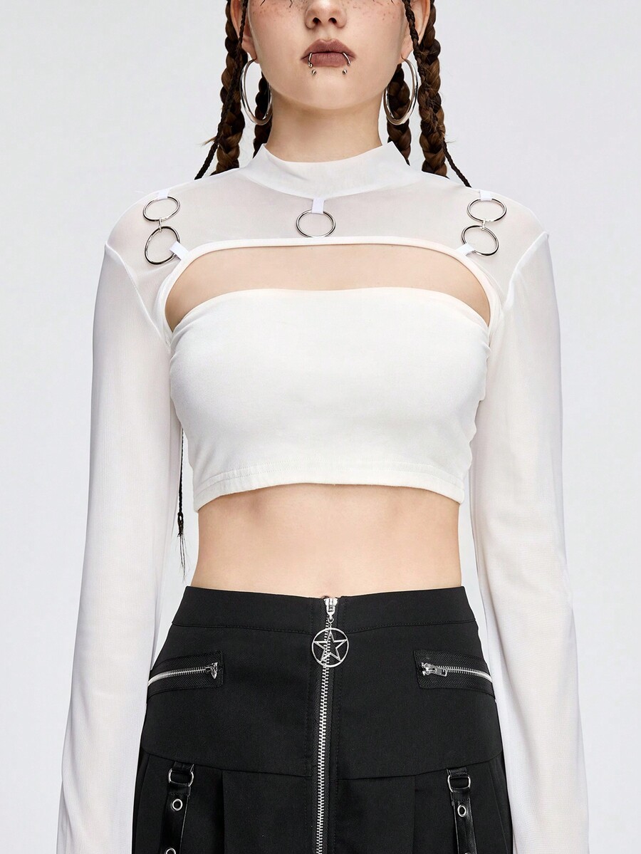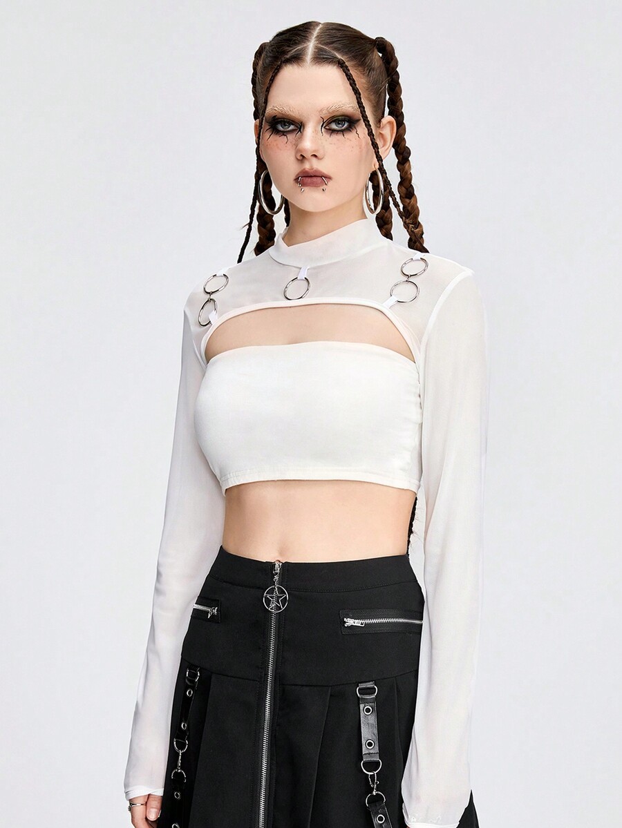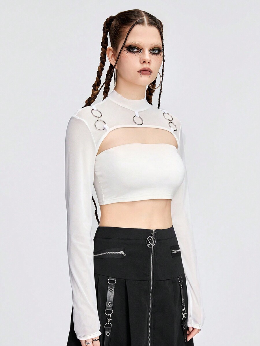 Gothic Punk Style Metal Ring Decor See-Through Micro Crop Top