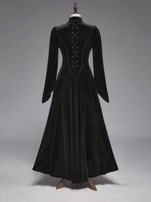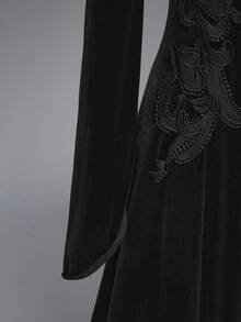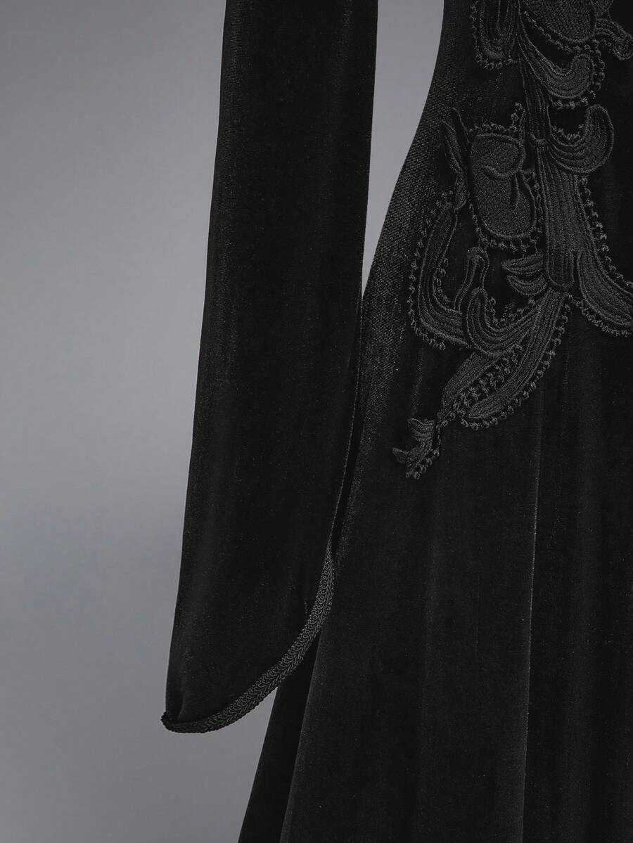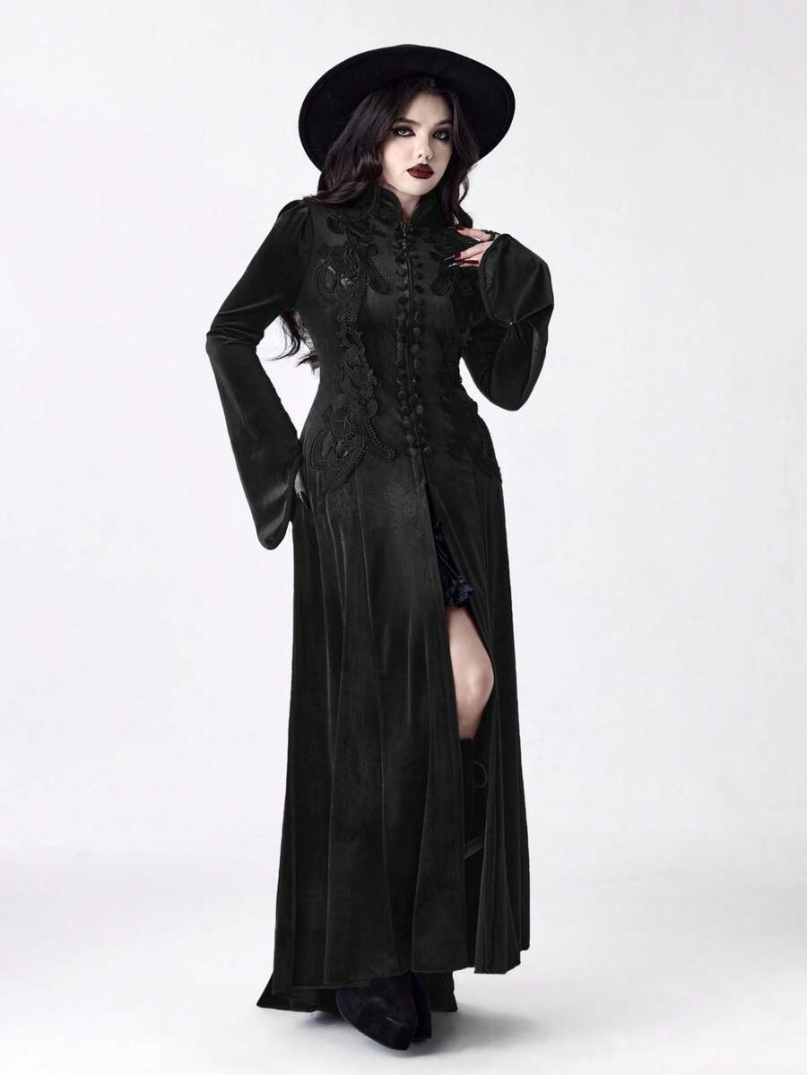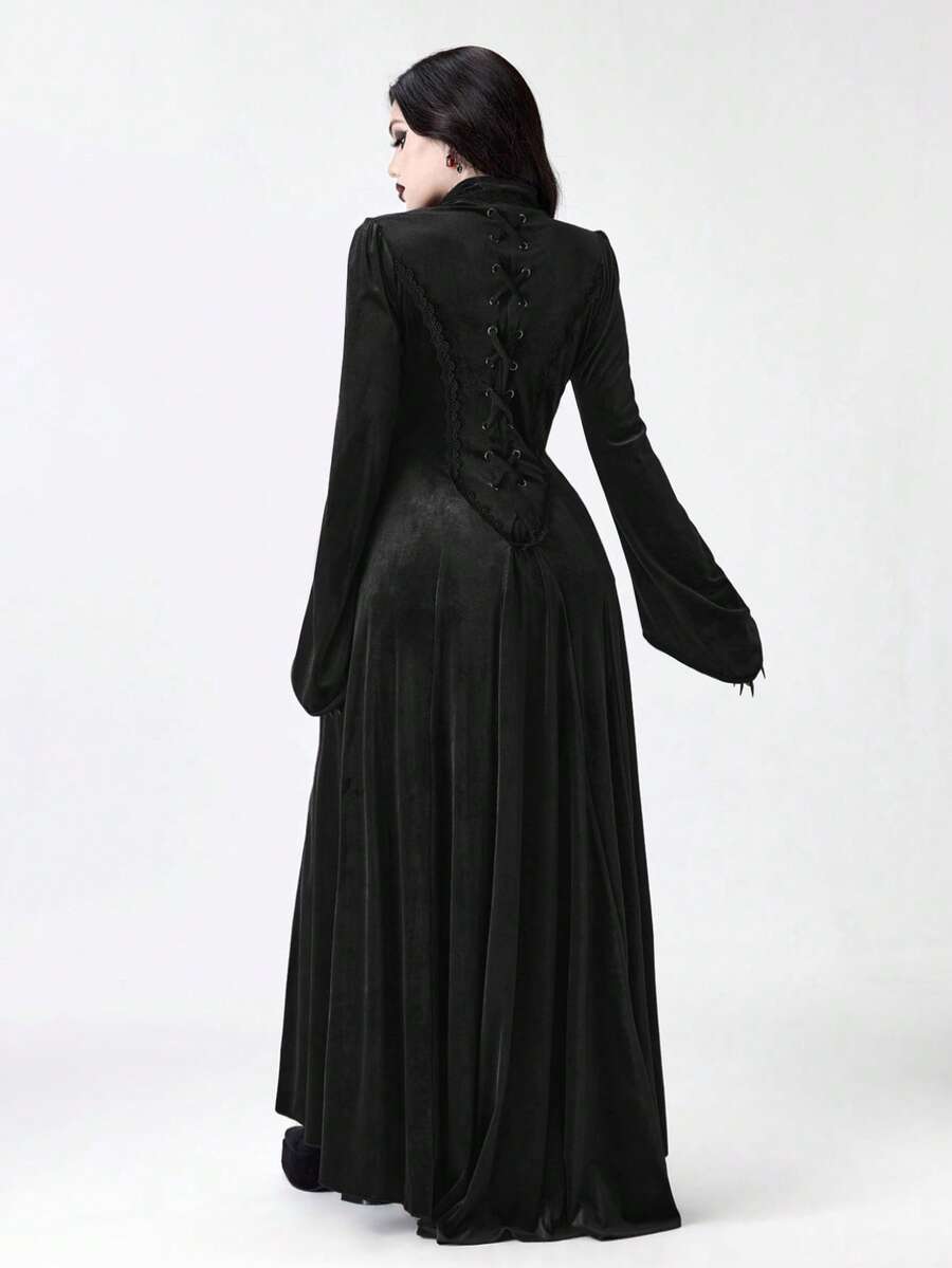 Gothic Retro Palace Style Contrast Color Lace Trim Velvet Long Jacket For Women