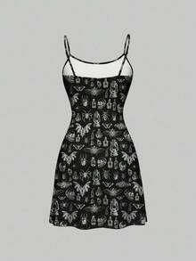 Gothic Skeleton, Moth, Bat, Spider All-Over Print Camisole Nightgown, Casual Sleepwear