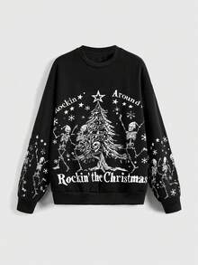 Goth Gothic Skull & Christmas Graphic Print Sweatshirt