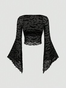 Gothic Square Collar Bat Puff Sleeve Fitted Blouse For Women