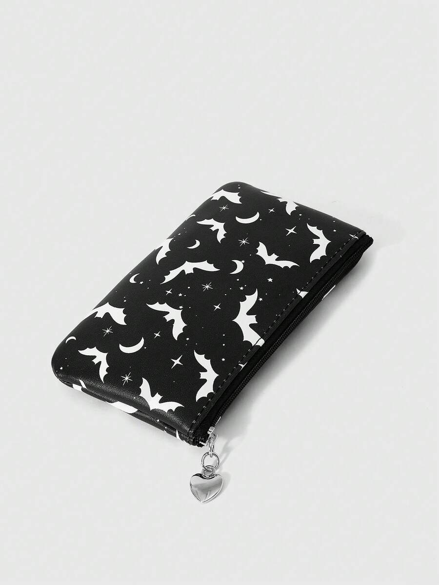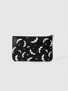 Gothic Style Bat Pattern Thick Leather Large Capacity Cosmetic Bag Coin Purse, Halloween Accessory 323200