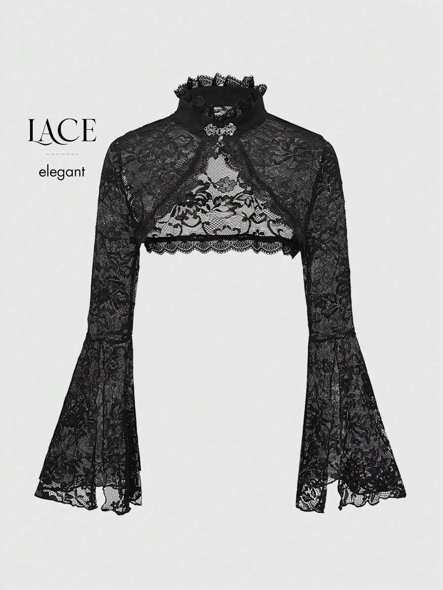 Gothic Style Bell Sleeve Lace Open Front Fashion Top
