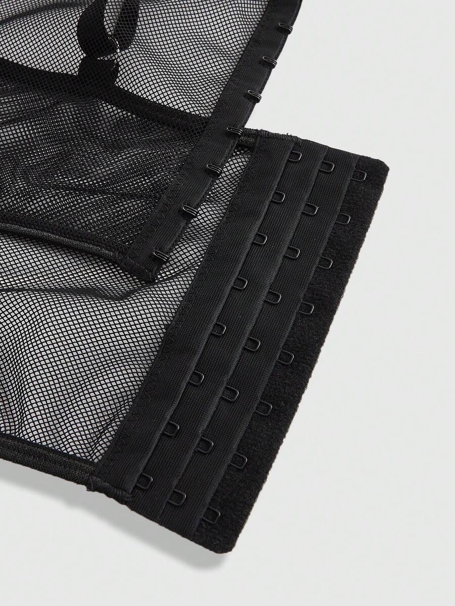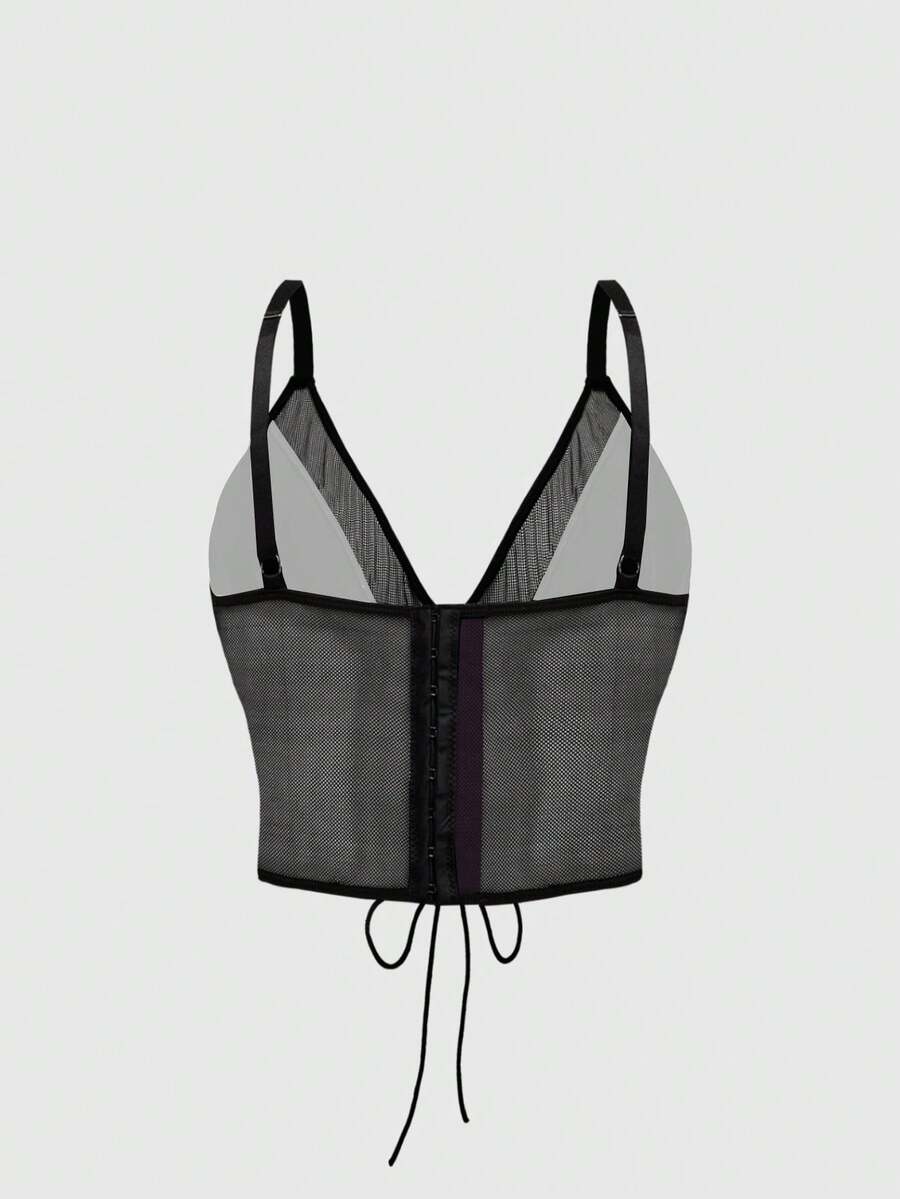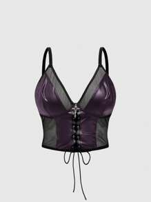 Gothic Style PU & Mesh Contrast Front Tie Design Women Tank Top