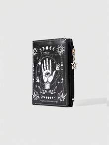 Gothic Style Wallet, Punk Girl Love Eye Gem Crystal Teardrop, Star, Sun, Sword Creative Design Pentagram Zipper Coin Purse, Casual Fashion Card Holder