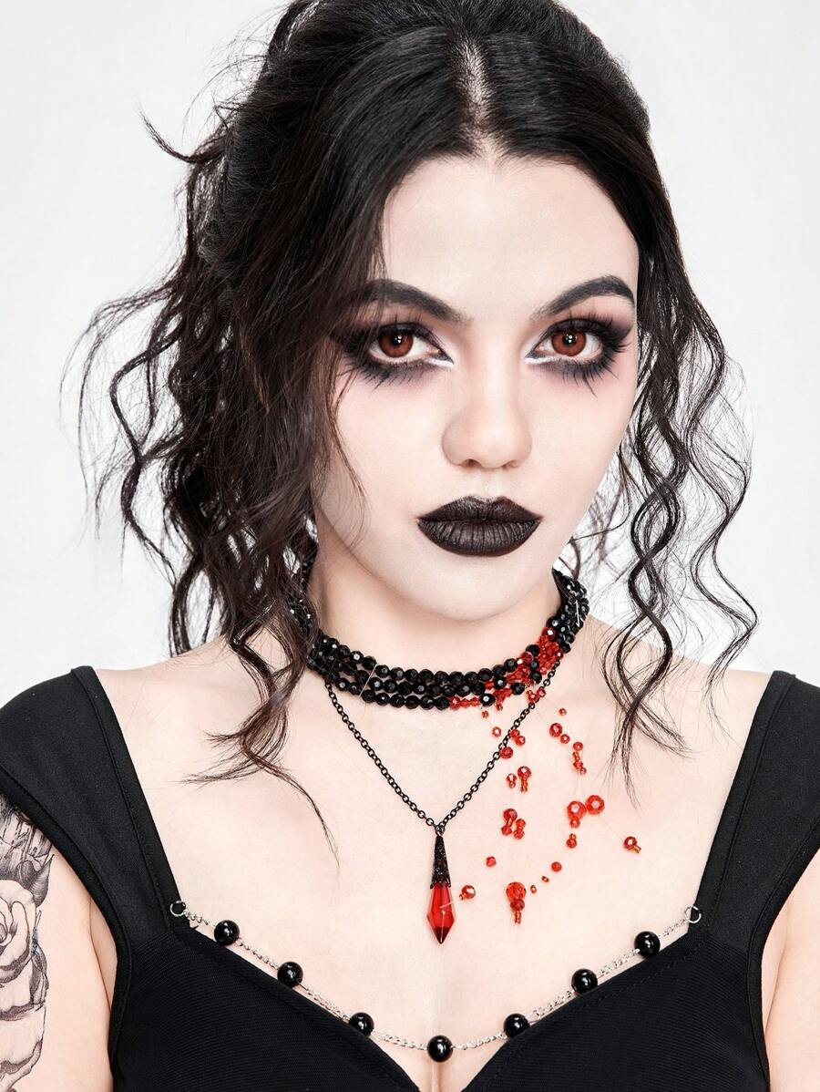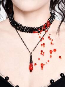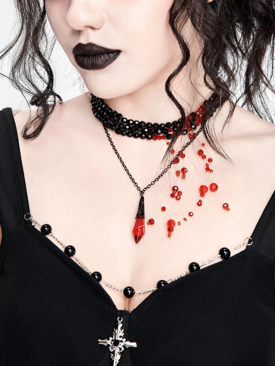 (Gothic Vampire Dropshipping) 2pcs Dark Gothic Style Blood Beads Women Necklace Set