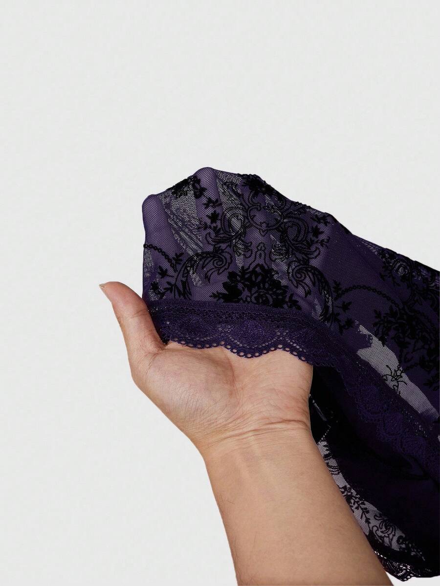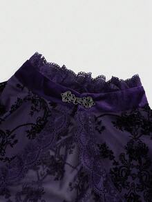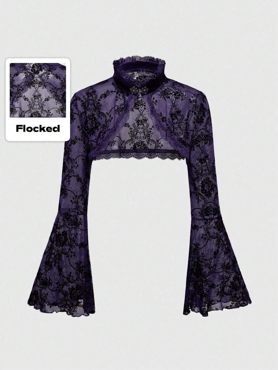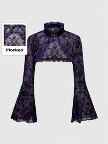 Gothic Versatile Slit Flare Sleeve Women Retro Flocked Floral Cardigan