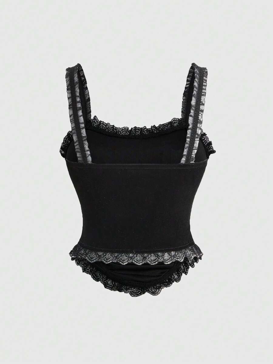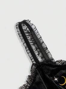 Gothic Vintage Dark Mysterious Eye & Vine Plant Embroidery Pattern Tight Fit Top