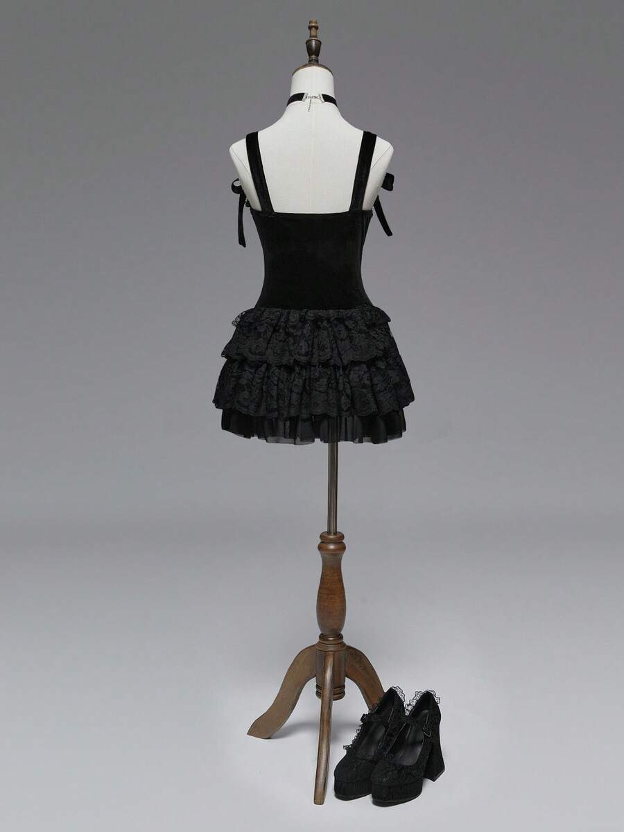 Goth Gothic Vintage Palace Ancient Egyptian Ankh Cross Embroidered Bow Tie Dress For Women