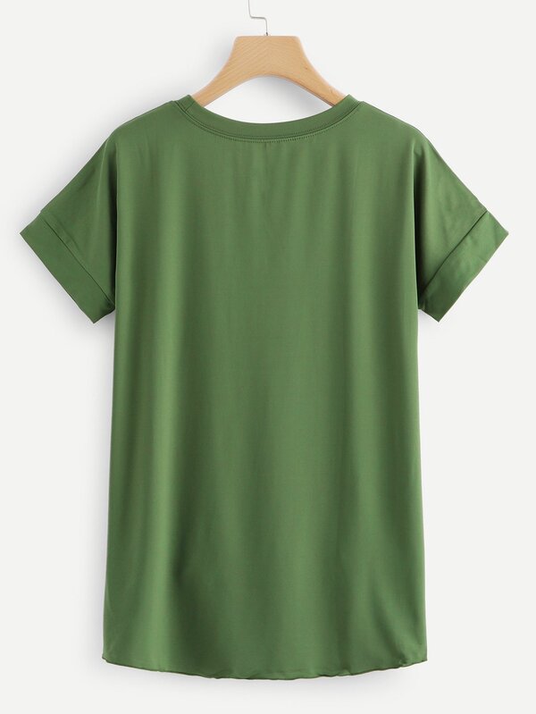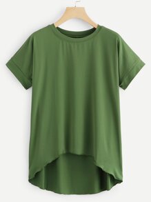 Green Short Sleeve Dip Hem T-shirt