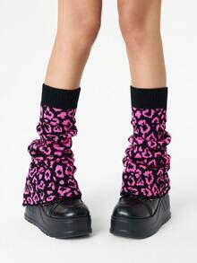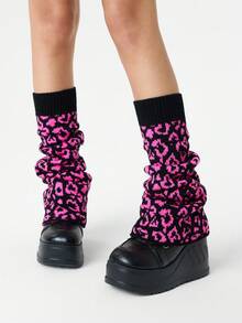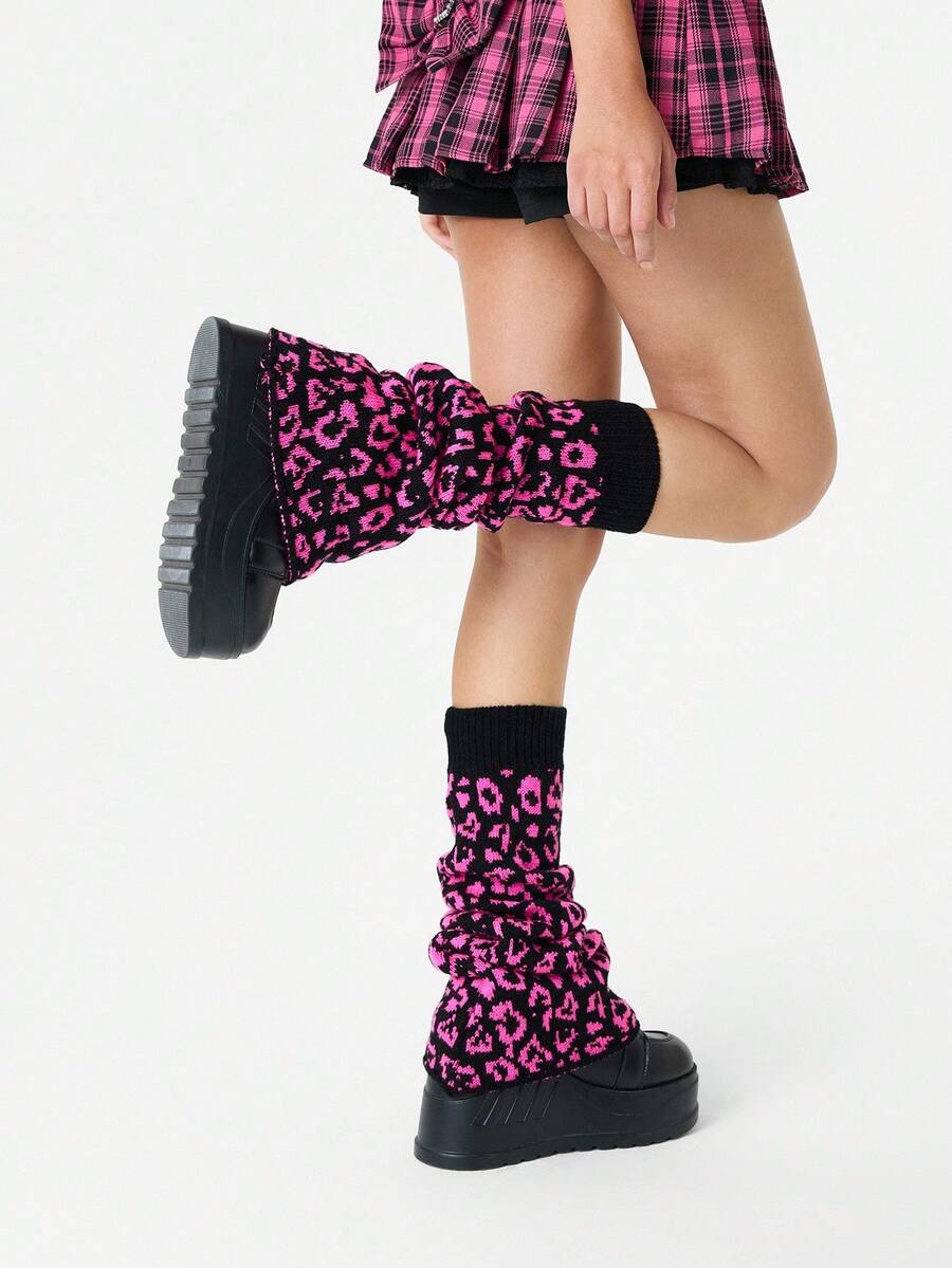 Grunge Punk 1 Pair Cute Kawaii Heart & Leopard Print White Background Wide Leg Warmers