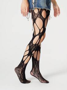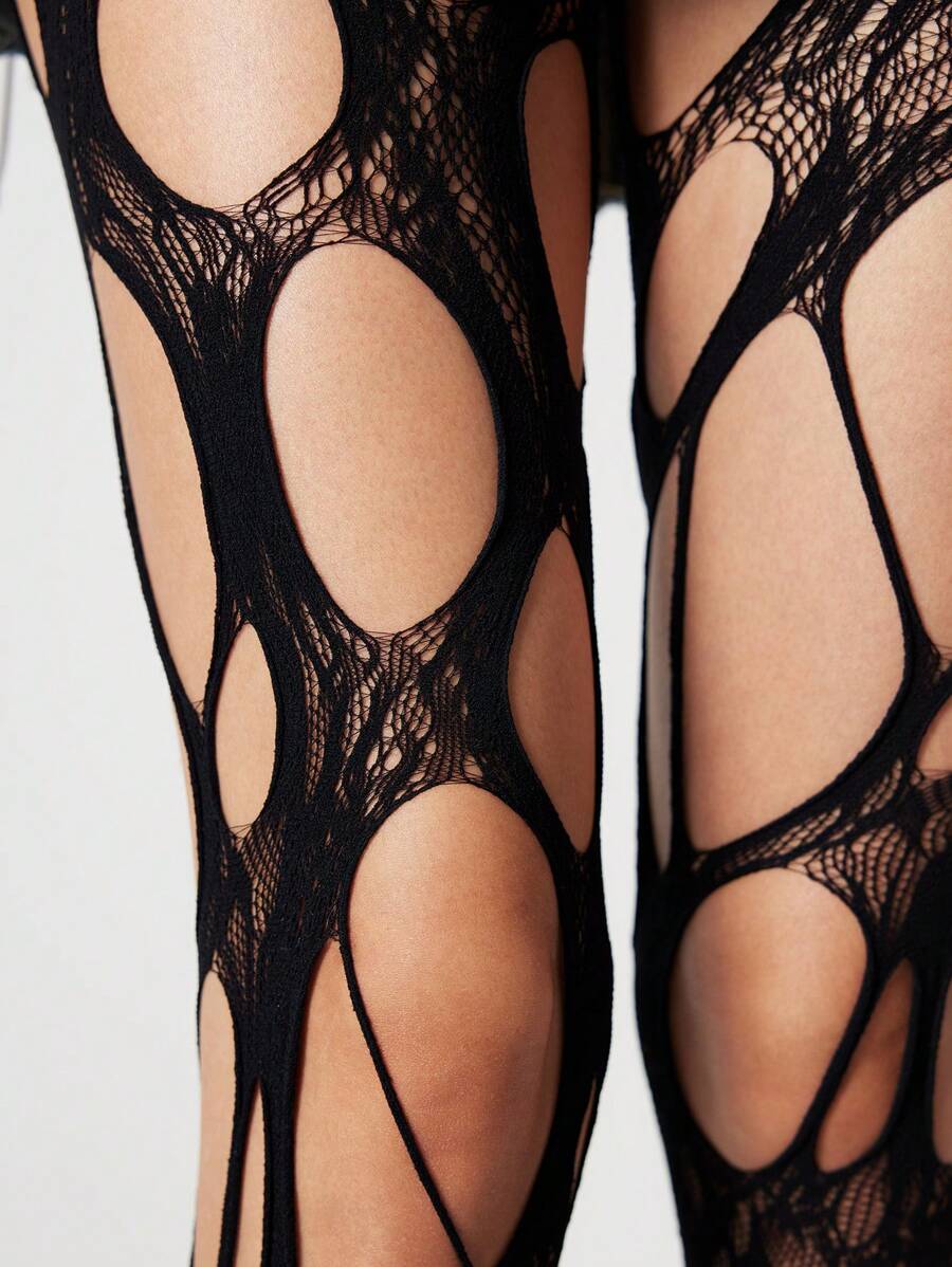 Grunge Punk 1 Pair Sexy Floral Fishnet Stockings, Vintage Sheer Stretchy Black Pantyhose, Ultra-Thin See-Through Tights