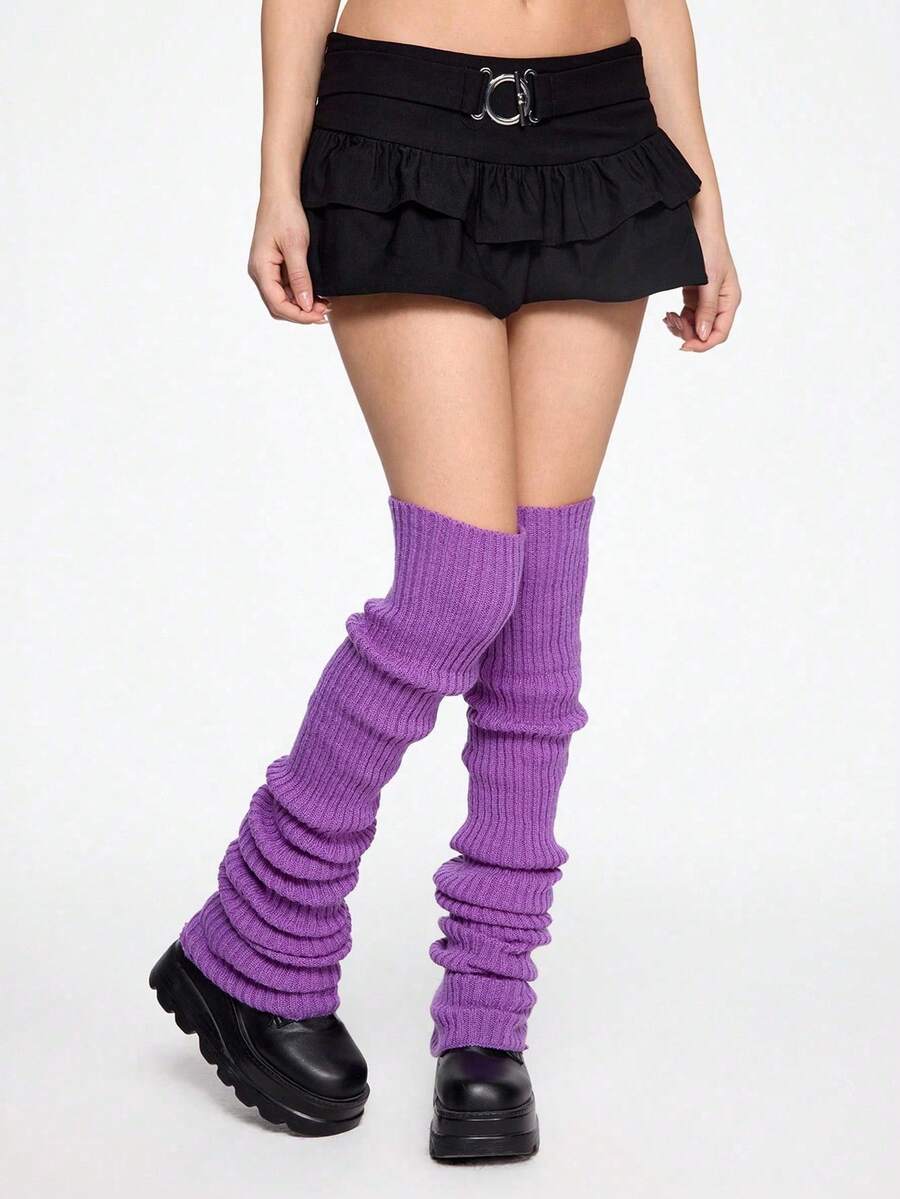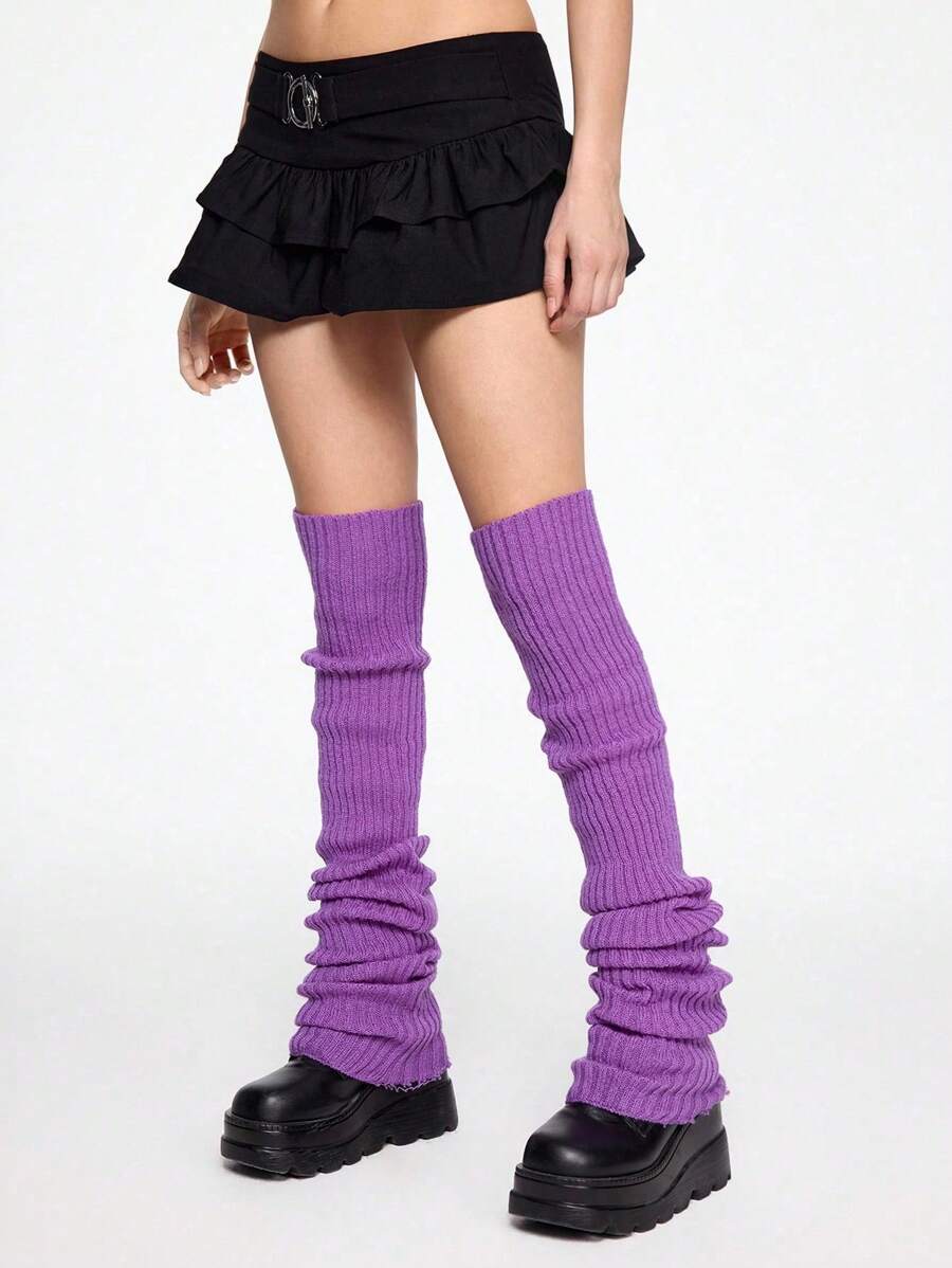 Grunge Punk 1 Pair Women All Season Solid Color Super Long Knitted Leg Warmers