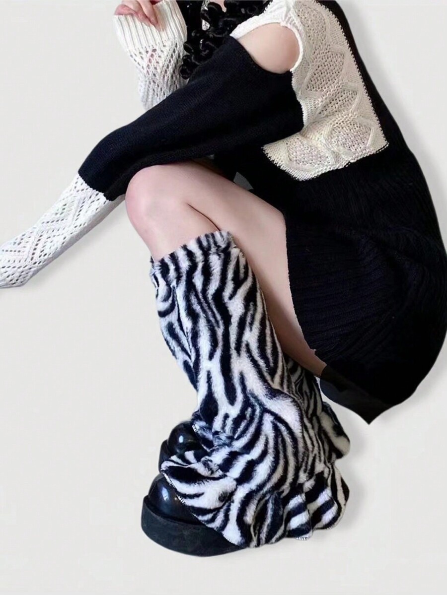 Grunge Punk 1 Pair Zebra Print Leg Warmers For Fashionable And Cozy Women
